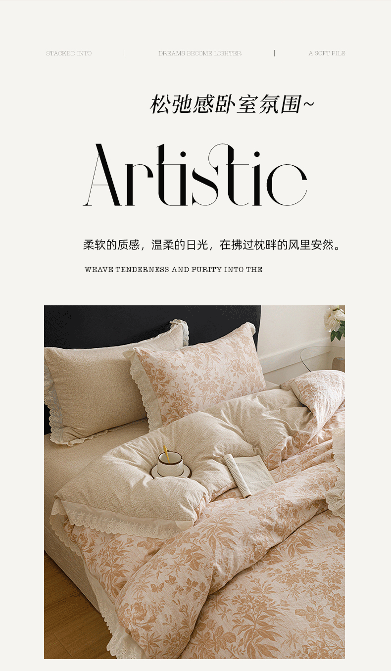 (总)悦然毛巾被 2026春夏新款加厚原麻水洗复古风四件套亚麻提花花边四件套,浮雕花影,花梦缘,花影织梦,木棉花信,相思叶