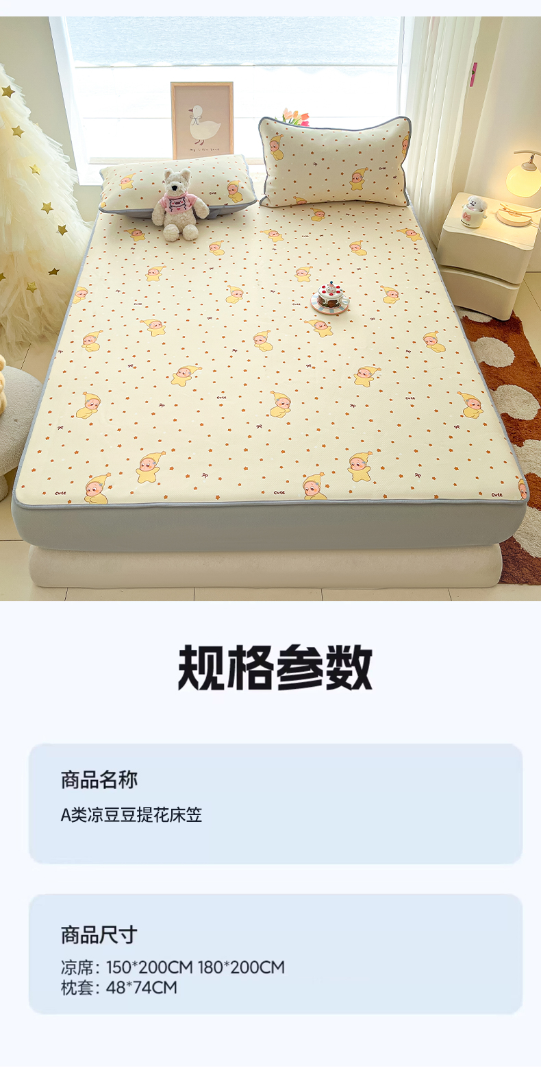 商品名称:川悦生活 2026新款凉豆豆斜纹冰丝凉席单品床笠单件床笠 床笠恰星星