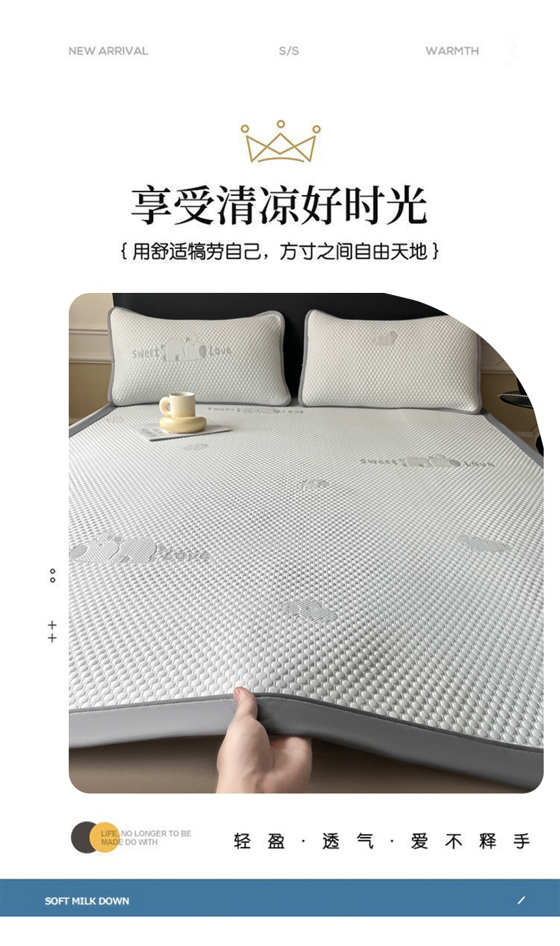 (总)席佬大 2026新款cool凉感PE肌理纹莫奈冰丝抗菌凉席席子系列,豆绿-平席款,浅紫-平席款,雾蓝-平席款,香槟金-平席款,云灰-平席款,豆绿-床笠款,浅紫-床笠款,雾蓝-床笠款,香槟色-床笠款,云灰-床笠款