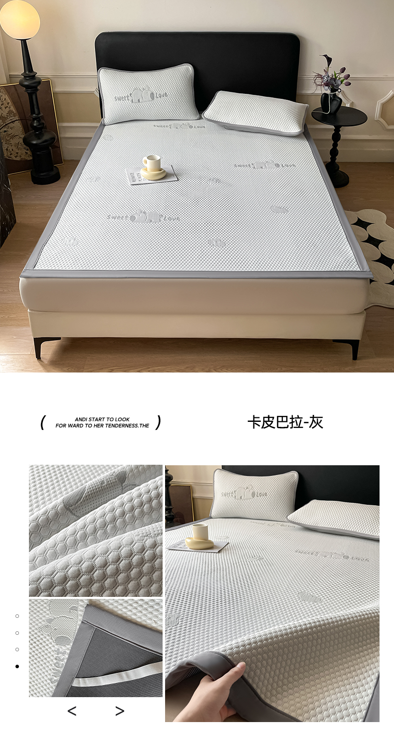 (总)席佬大 2026新款负离子抑菌冰丝软席子凉席-床笠款,灰色,粉色,蓝色,绿色