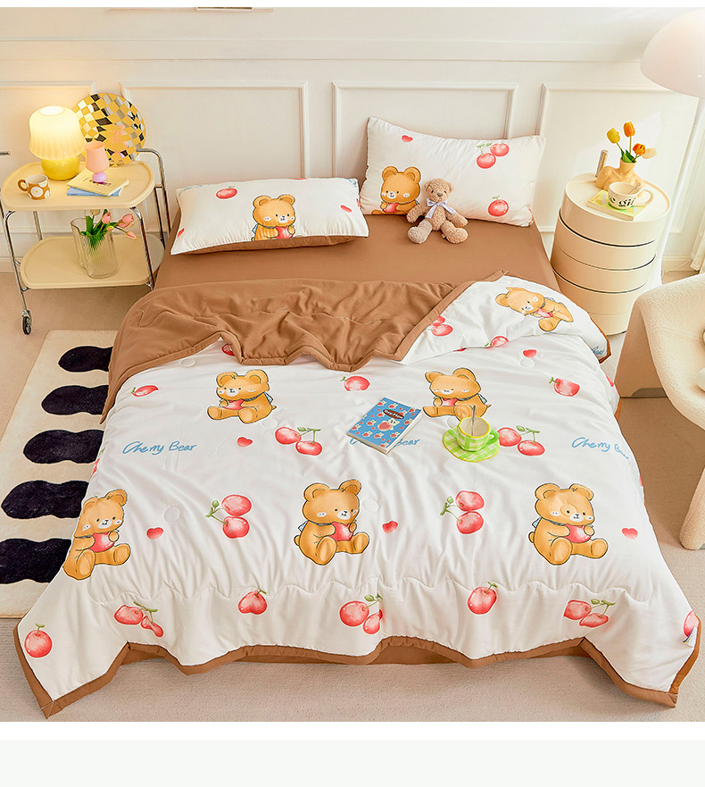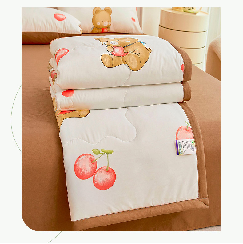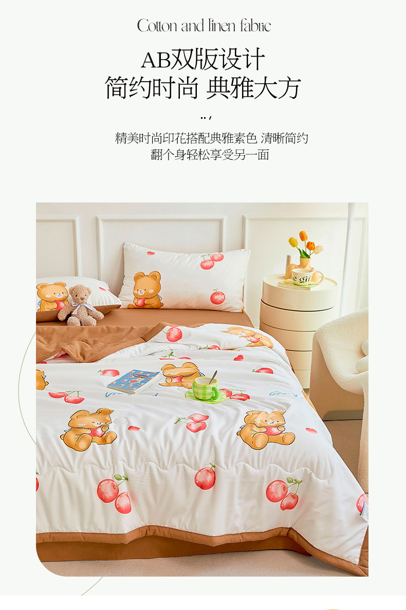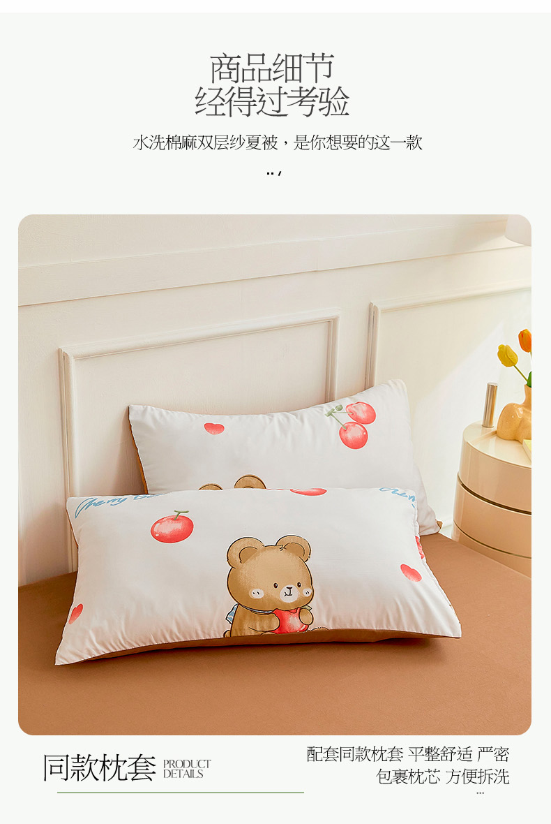 • 91家纺网 家纺一手货源 找家纺 卡斯诺家纺馆 2026新款水洗棉麻双层纱夏被夏凉被空调被 樱桃熊