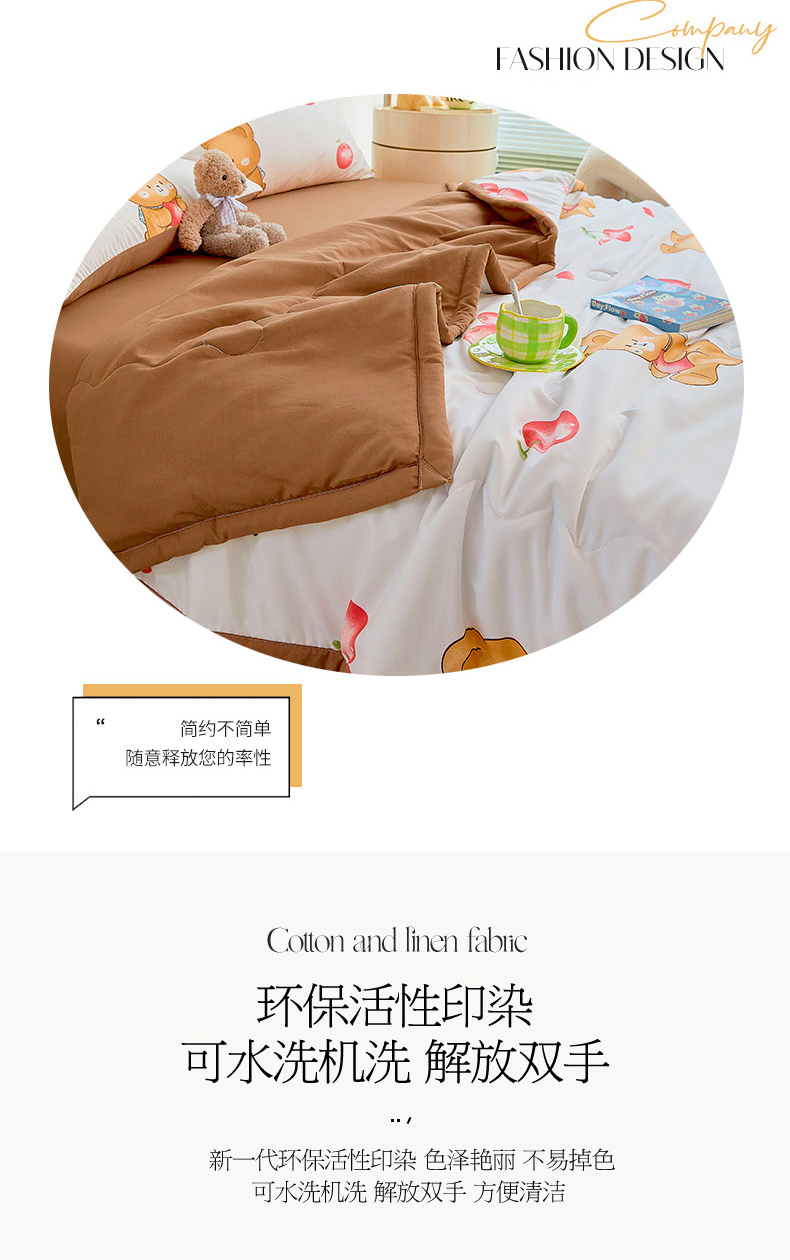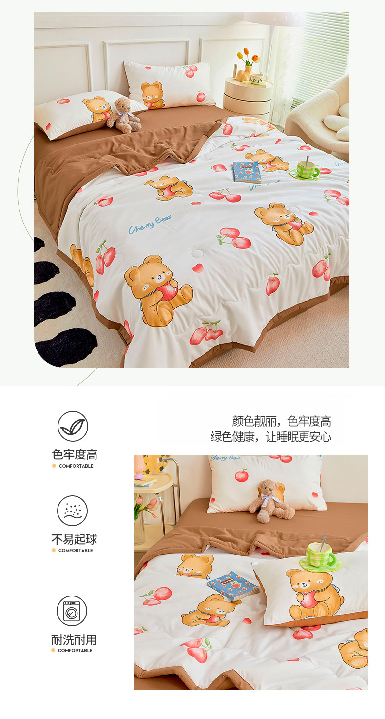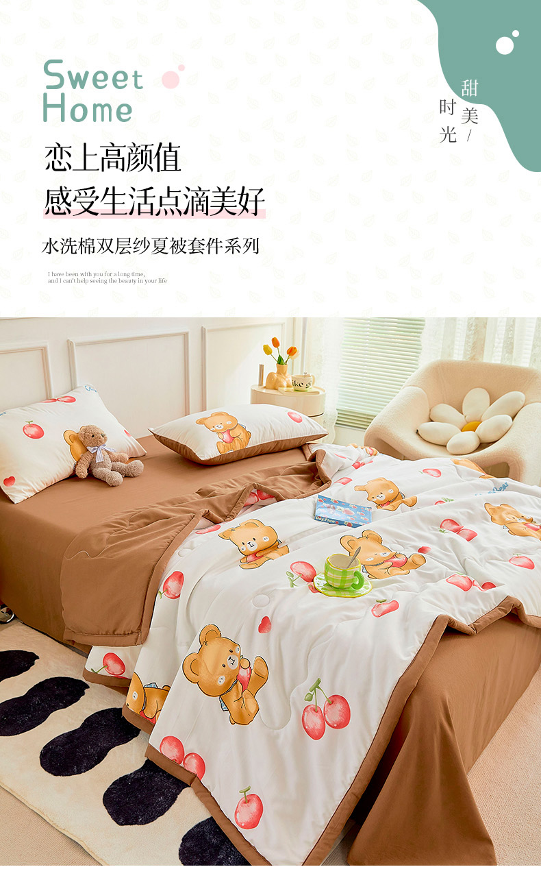 • 91家纺网 家纺一手货源 找家纺 卡斯诺家纺馆 2026新款水洗棉麻双层纱夏被夏凉被空调被 樱桃熊