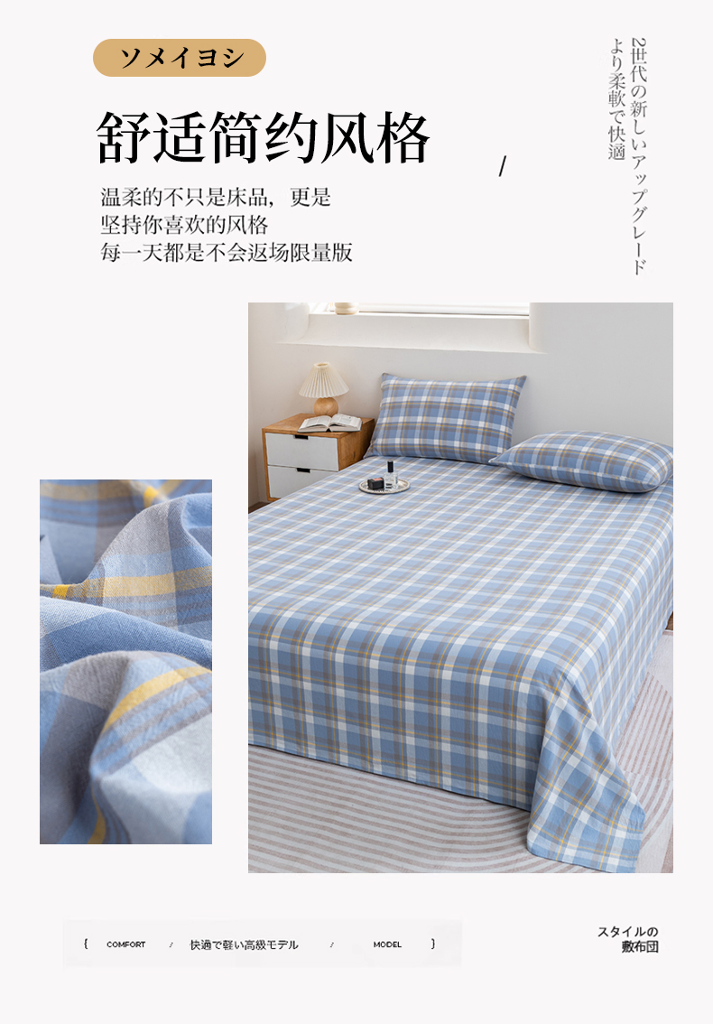 (总)居美良品 2026新款100%全棉色织水洗棉A类纯棉床单单品床单床单单件,碧波青,高冷灰,灰小格,经典灰,静雅-蓝,静雅-绿,静雅-玉,咖小格,蓝小格,绿小格,迷雾-蓝,奶茶咖,奶昔-白,浅水蓝,珊瑚玉,松石绿,香槟咖,烟雨-灰