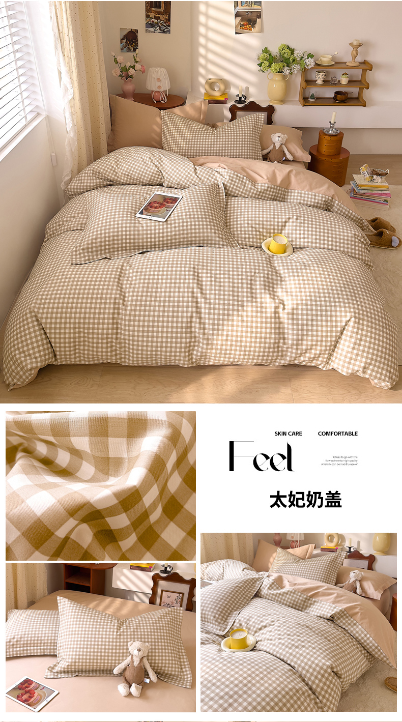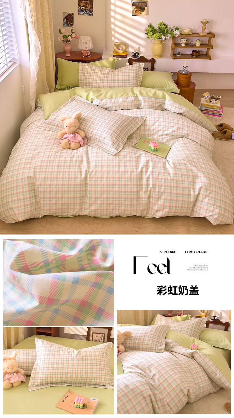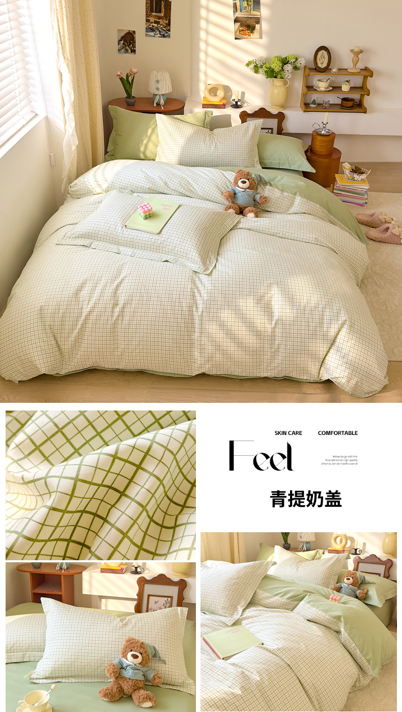 当前位置: 91家纺网 > 商品网购 > 床品套件 > 四件套 > 全棉普通四件套 > DoDo 兜兜 2026年全棉纯棉ins风小清新四件套 青提奶盖-枕套混搭(格子+纯色)