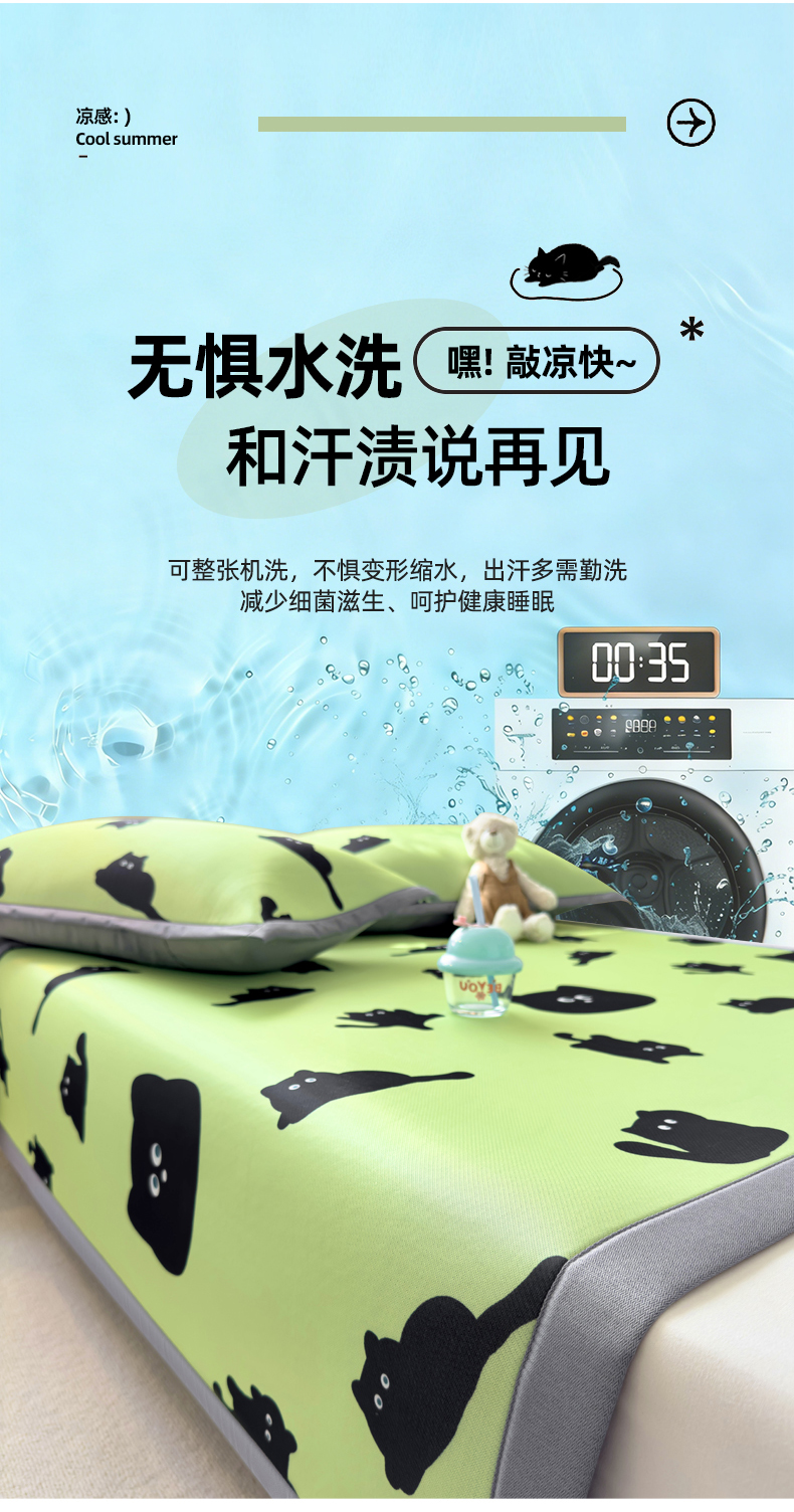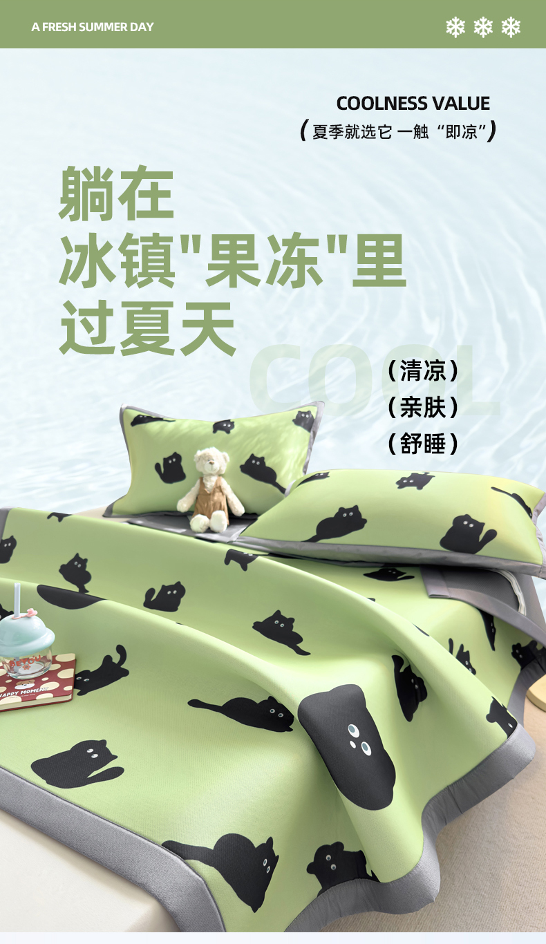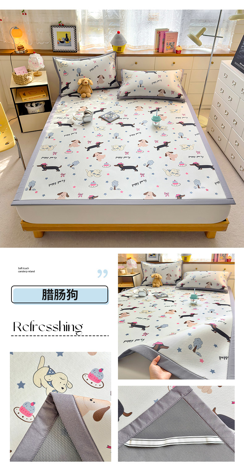 (总)圣比熊 2026新款烫光数码印花冰丝凉席,粉雾KT猫,薄荷喵星,茶杯大,腊肠狗,蓝莓甜熊,奶雾小熊,条纹萌觉