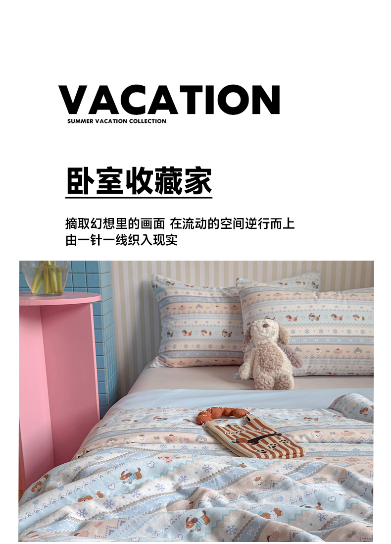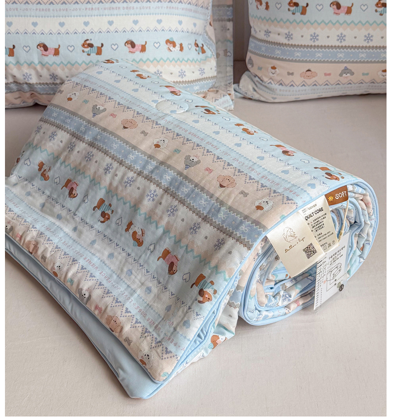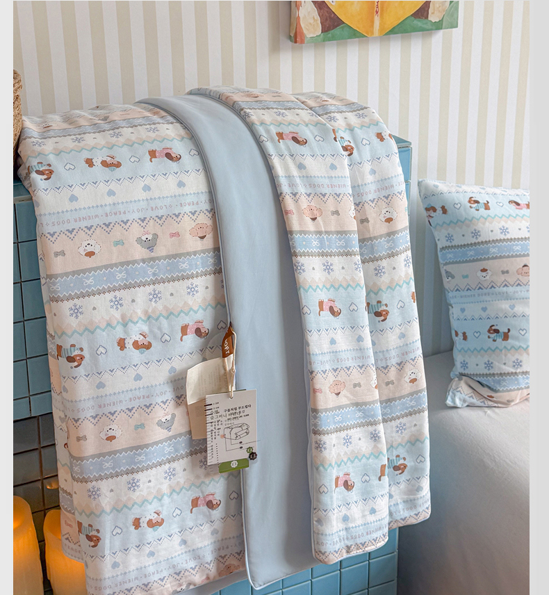 • 91家纺网 家纺一手货源 找家纺 麦伦家居 2026新品双层纱小冰皮夏被夏凉被空调被 费尔岛小狗