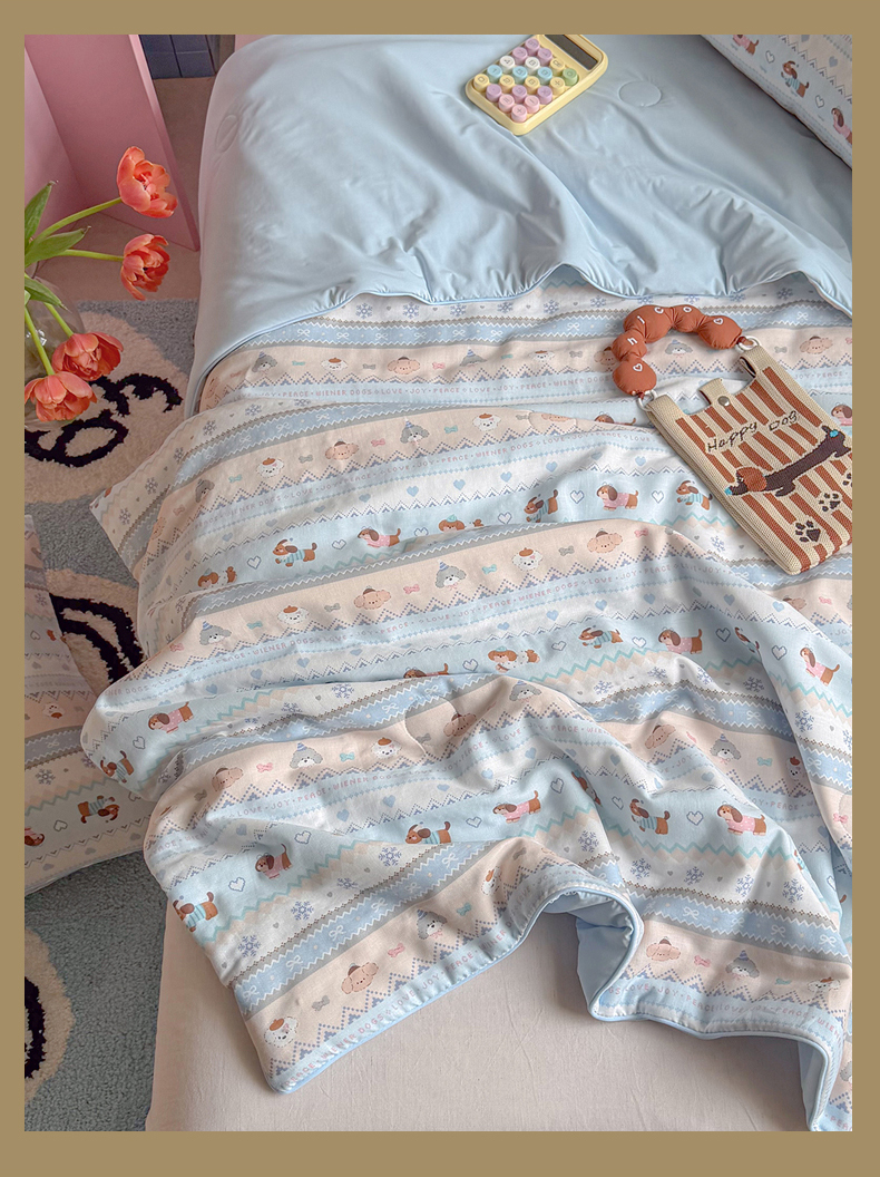 麦伦家居 2026新品双层纱小冰皮夏被夏凉被空调被 费尔岛小狗