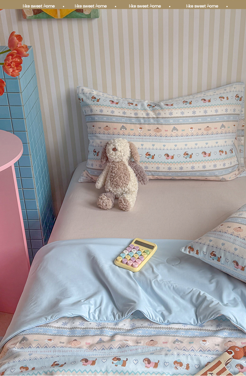 • 91家纺网 家纺一手货源 找家纺 (总)麦伦家居 2026春夏新品13372全棉卡通小清新四件套,春日花语,焦糖小熊,笔记本,宾果时光,果子象,含羞草,蝴蝶结花朵粉,机灵猫,咖啡猫,快乐小星星,蕾丝小兔,漫漫花香,莓果熊,平安狗狗,时光里,线条汪汪,小玫瑰紫,紫樱桃
