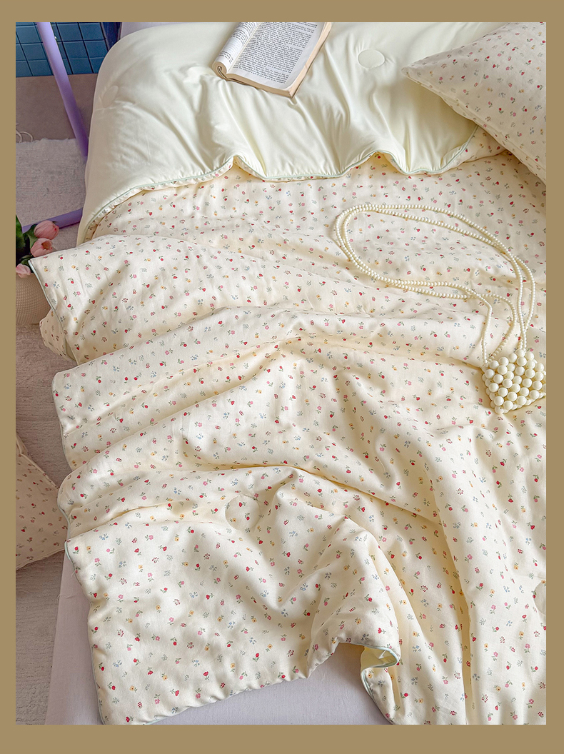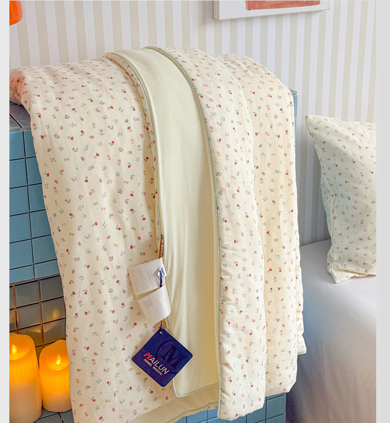 • 91家纺网 家纺一手货源 找家纺 麦伦家居 2026新品双层纱小冰皮夏被夏凉被空调被 奶杏小碎花