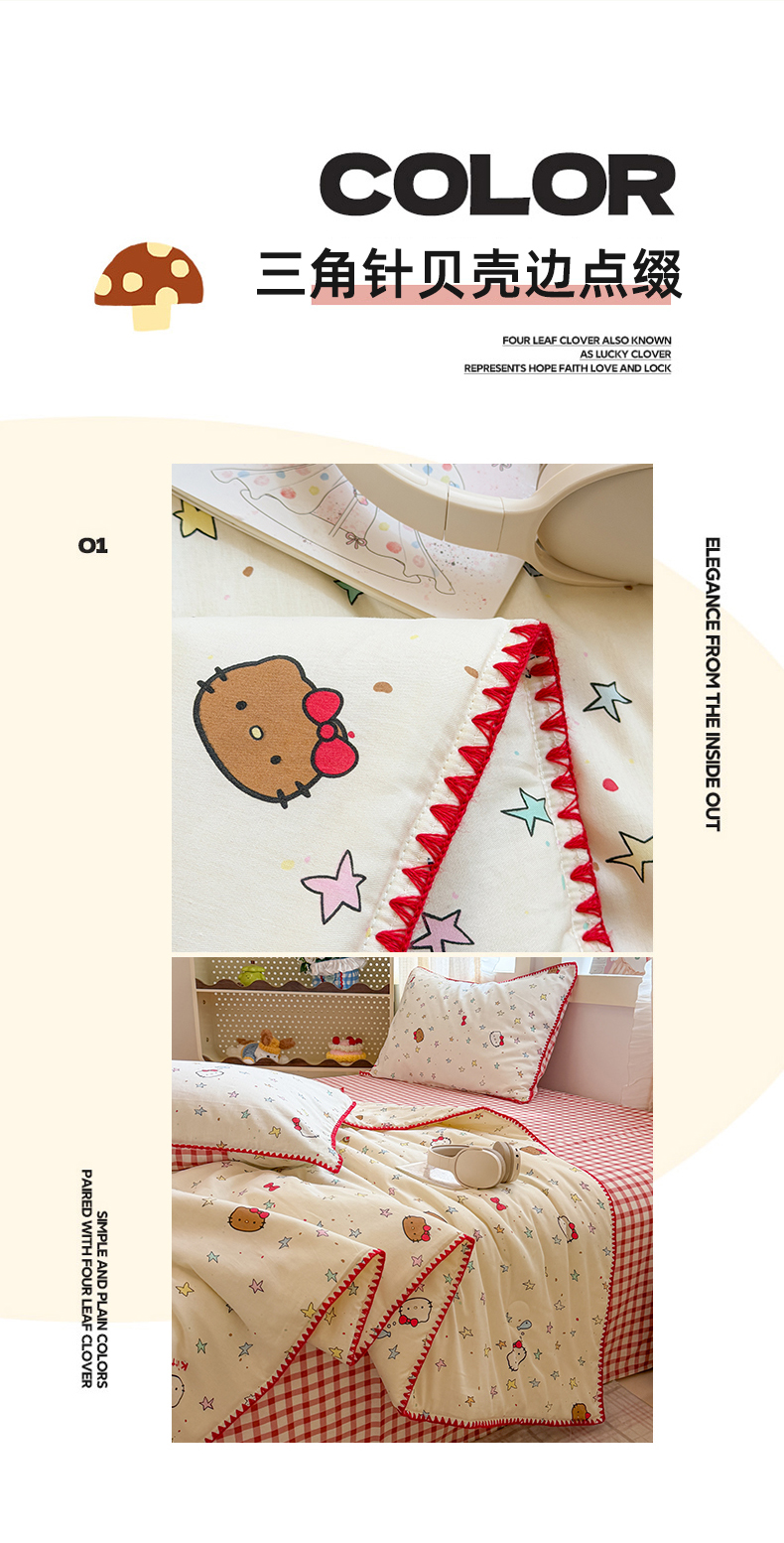 (总)沐辰 2026新款A类贝壳边全棉纯棉棉花夏被夏凉被空调被,安睡小熊,黑猫奶咖,蜡笔萌趣,奶熊甜梦,兔叽星梦,星星猫,治愈小狗