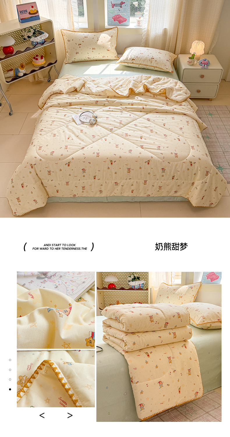 • 91家纺网 家纺一手货源 找家纺 沐辰 2026新款A类贝壳边全棉纯棉棉花夏被夏凉被空调被 奶熊甜梦