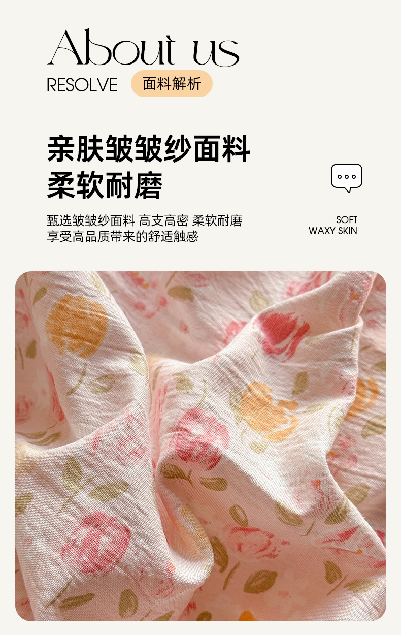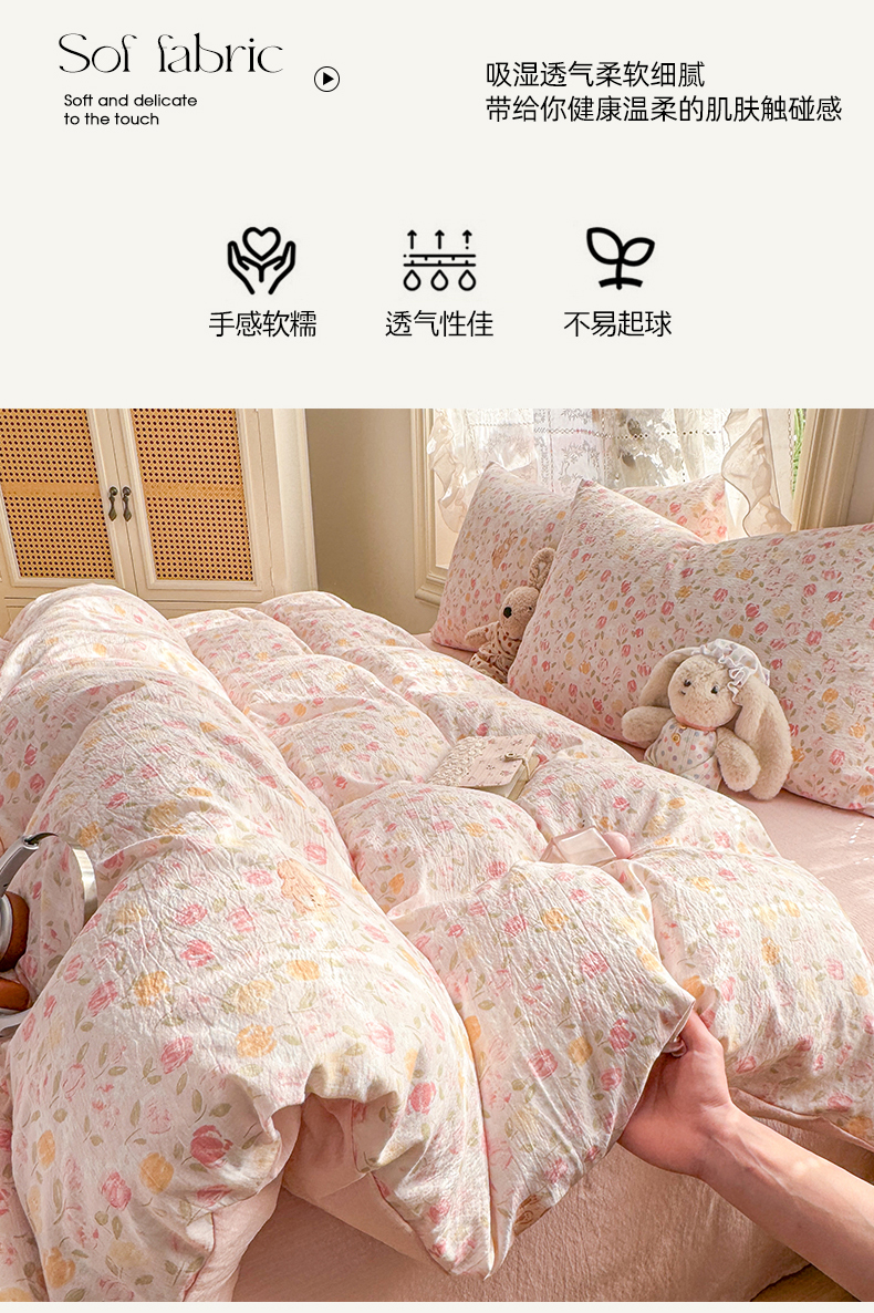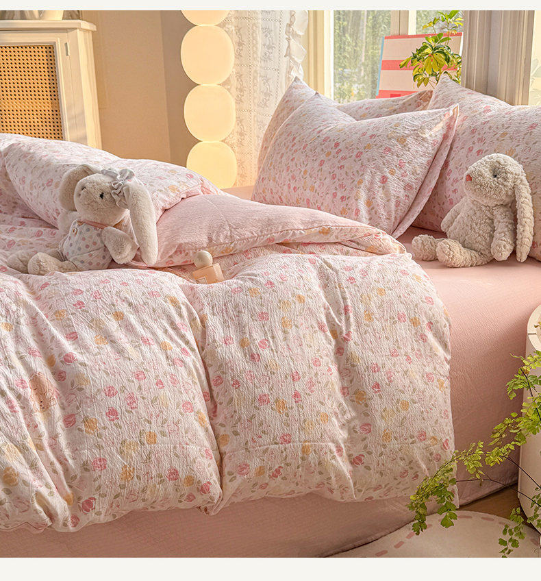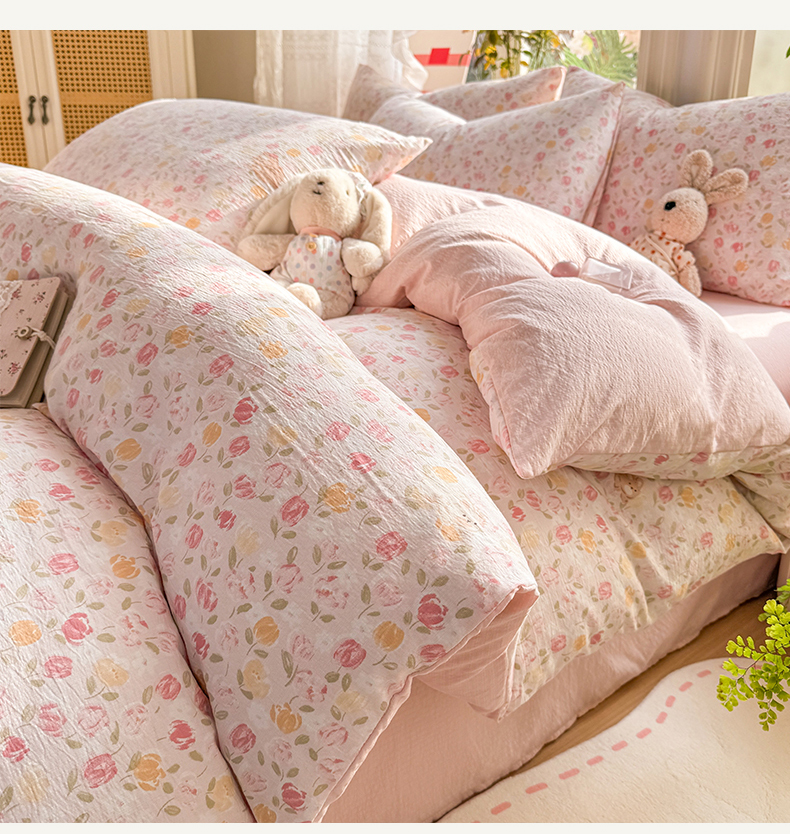 当前位置: 91家纺网 > 商品网购 > 床品套件 > 四件套 > 化纤普通四件套 > 丝芙妮家居 2026新款皱皱棉双层纱泡芙棉四件套 春之约