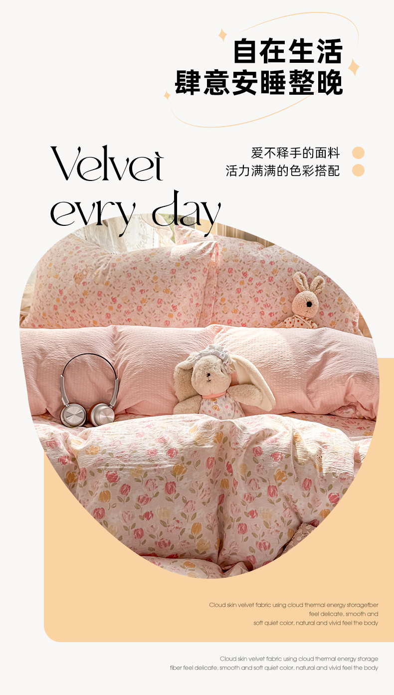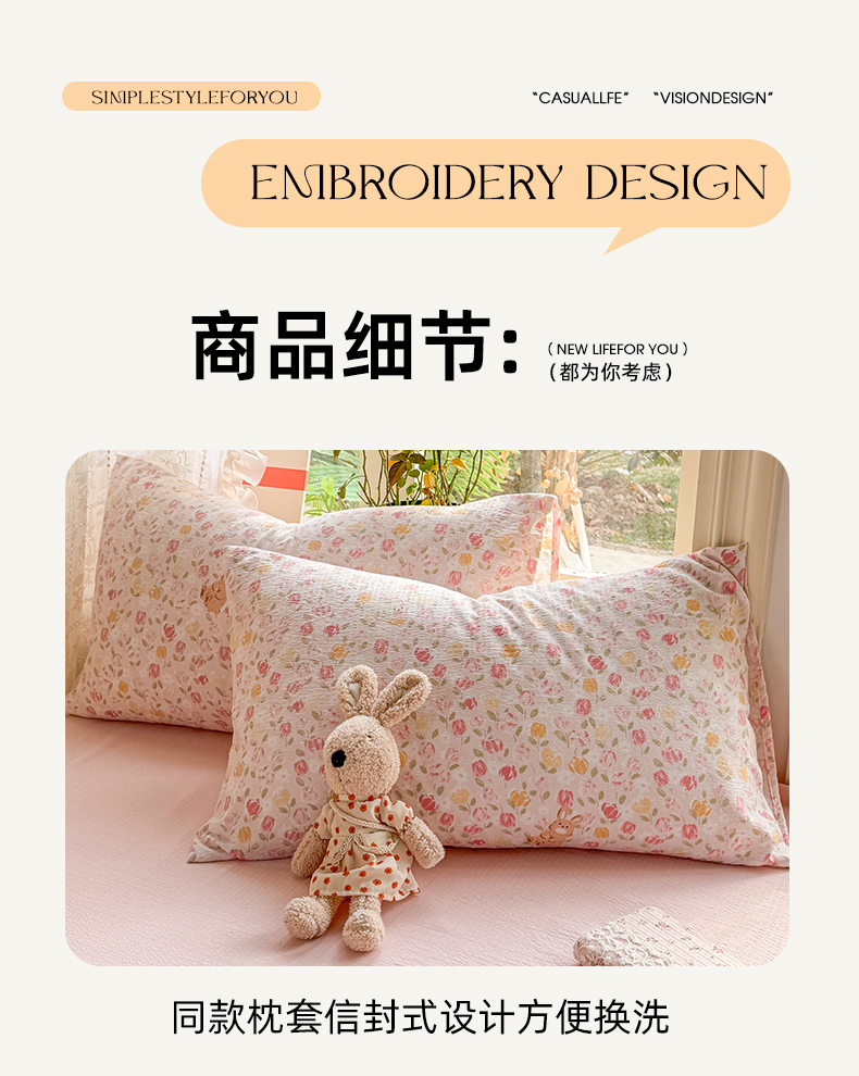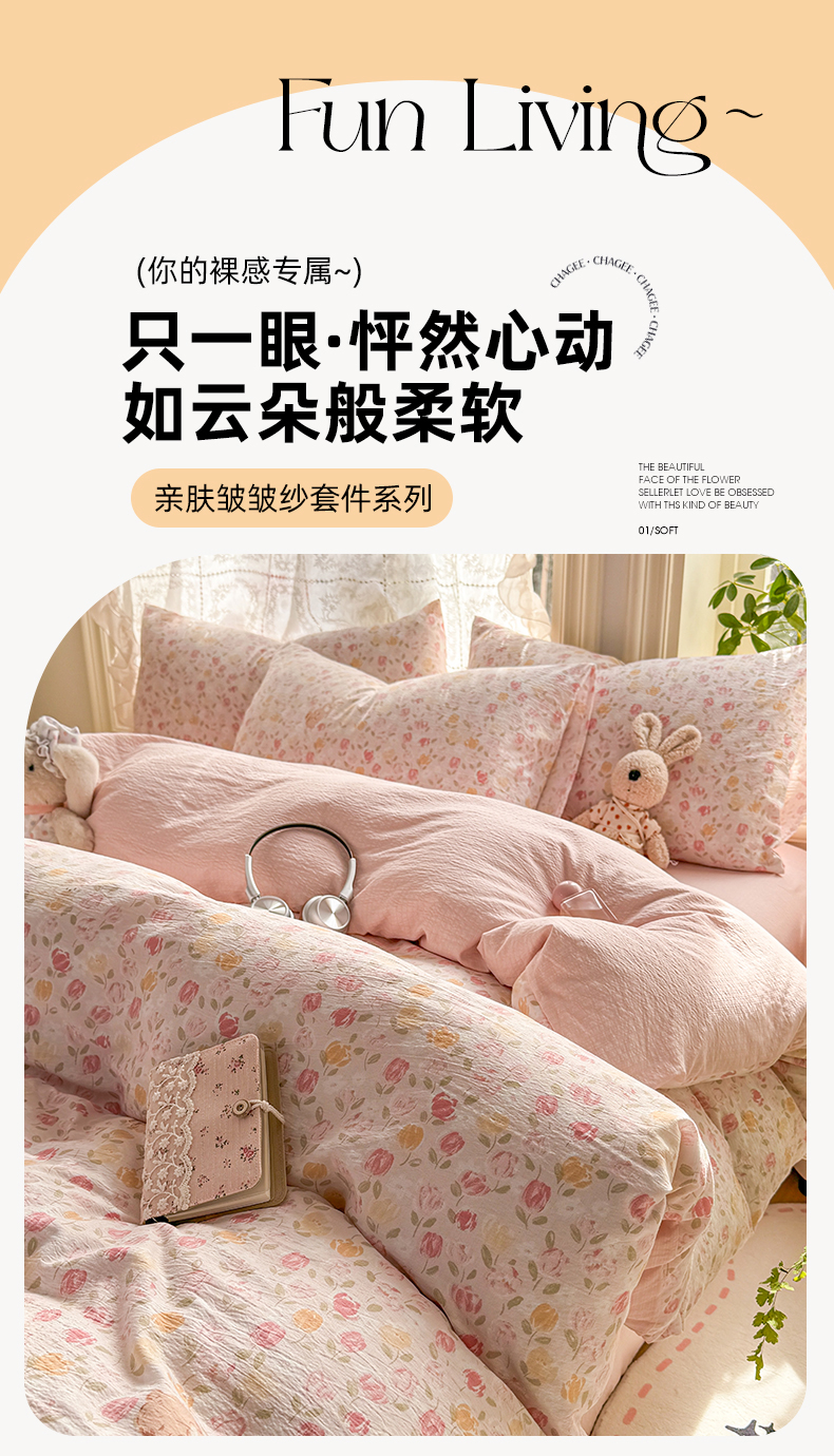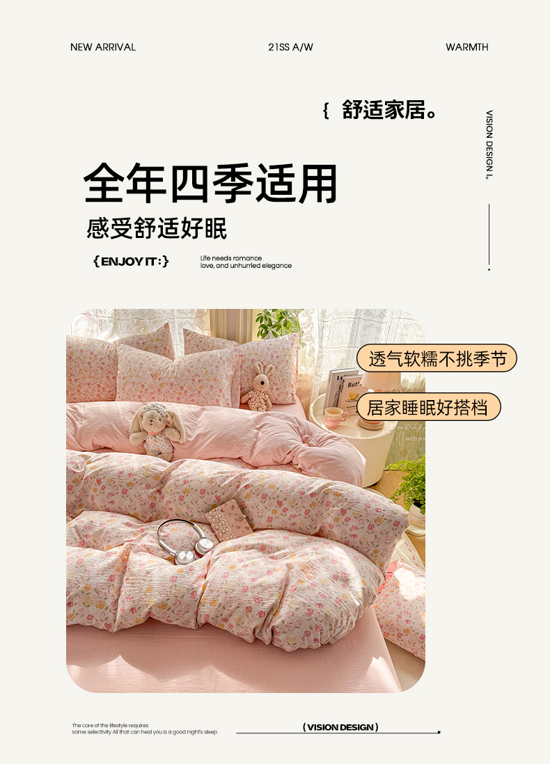 当前位置: 91家纺网 > 商品网购 > 床品套件 > 四件套 > 化纤普通四件套 > 丝芙妮家居 2026新款皱皱棉双层纱泡芙棉四件套 春之约
