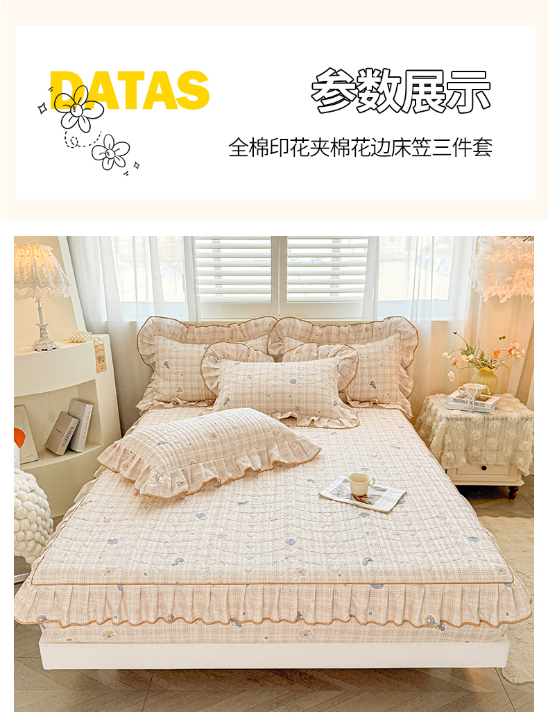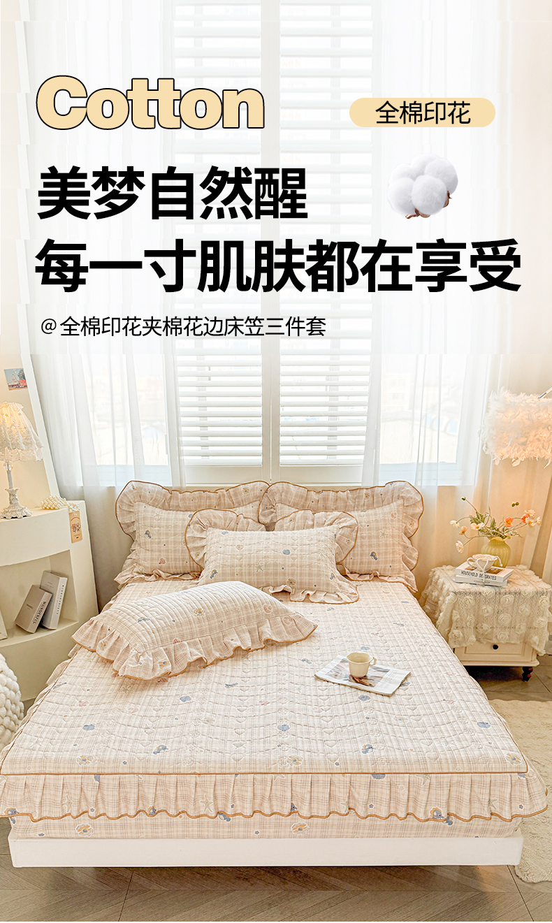 当前位置: 91家纺网 > 商品网购 > 床品套件 > 三件套 > (总)宜凡家纺 2026新款全棉印花夹棉花边床笠套件②--三件套