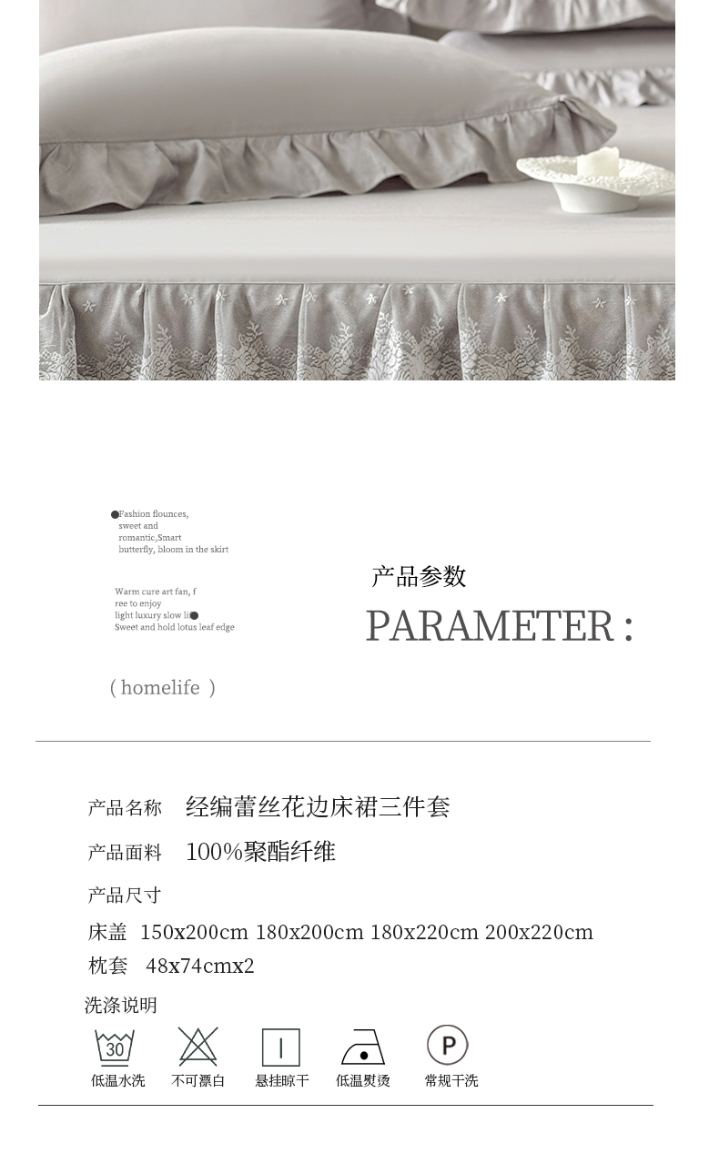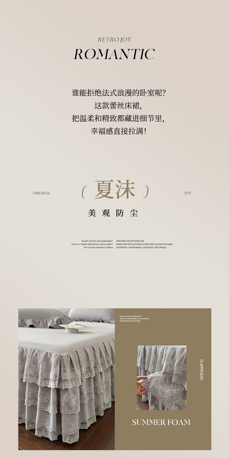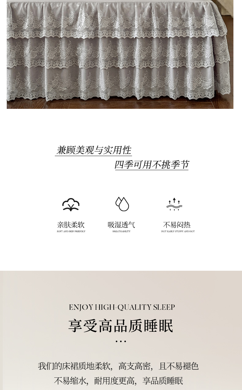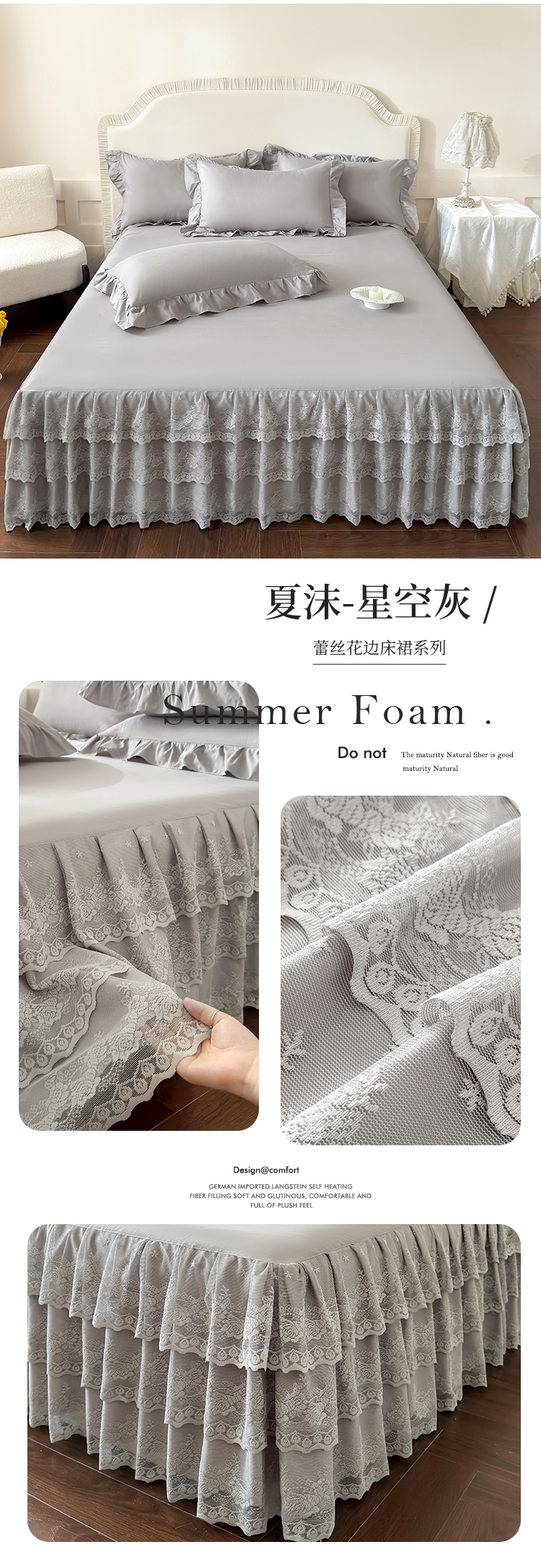 商品名称:乐朵家居 2026新款 26-1 夏沫 蕾丝床裙 星空灰