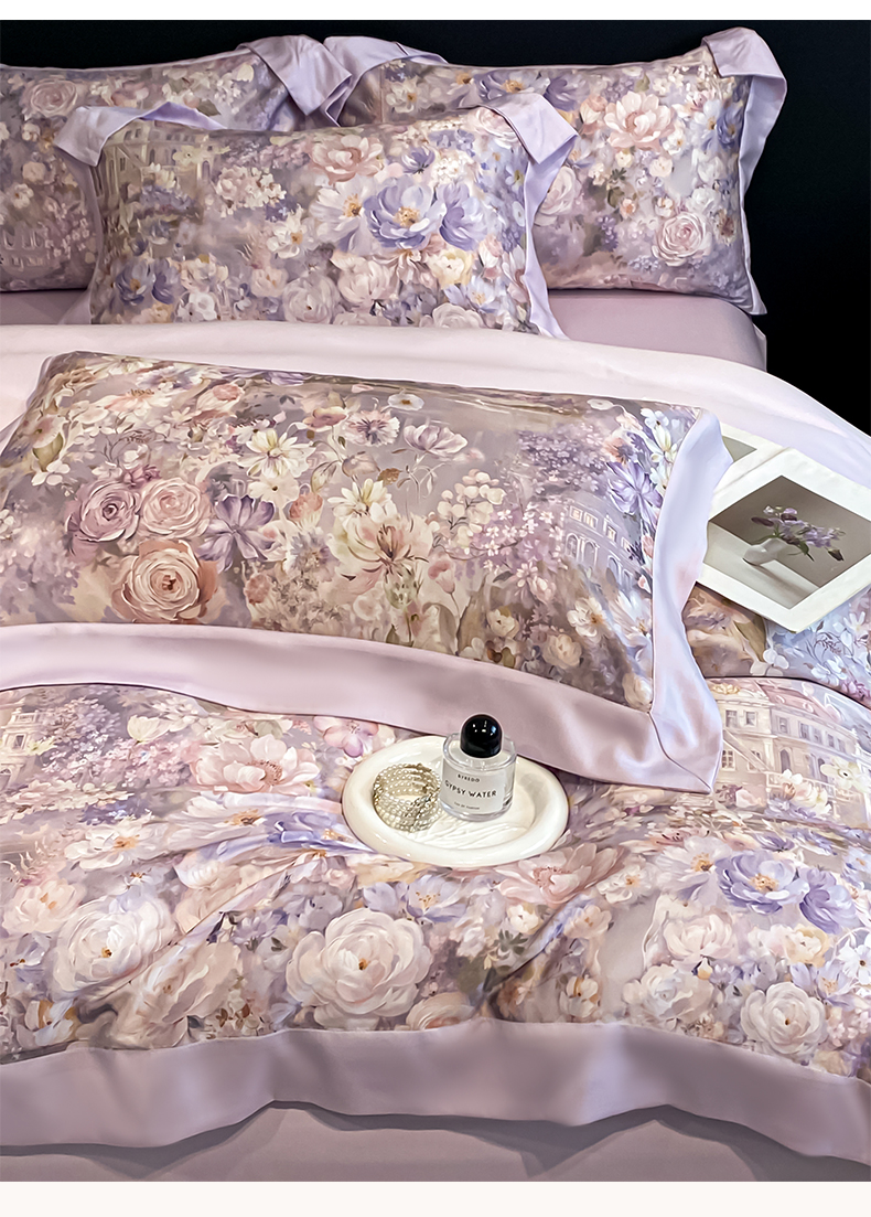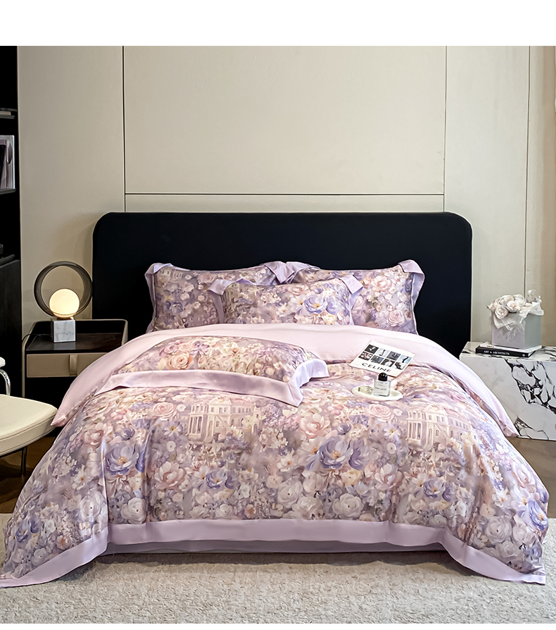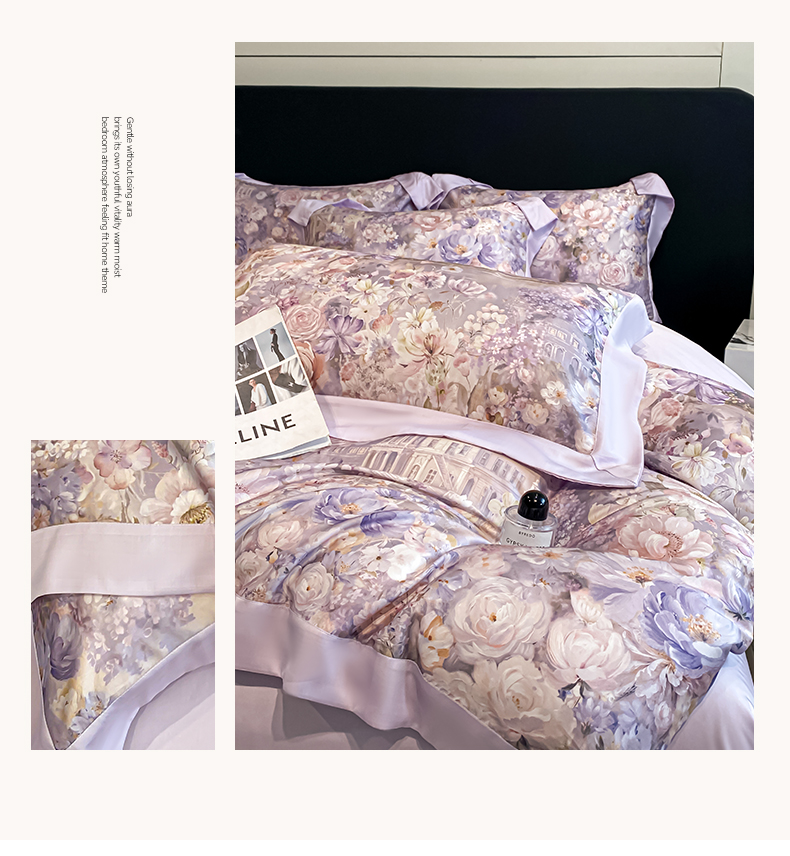 博纳家纺 2026新款天丝莱塞尔轻奢高端数码印花拼角宽边夏被四件套冰感凉感四件套--夏洛伊系列 蔷薇庄园