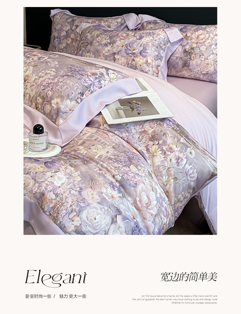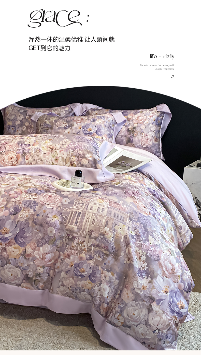 (总)博纳家纺 2026新款天丝莱塞尔轻奢高端数码印花拼角宽边夏被四件套冰感凉感四件套--夏洛伊系列,柏林春诗,春亭序,漫枝,绮梦,蔷薇庄园,夏洛伊