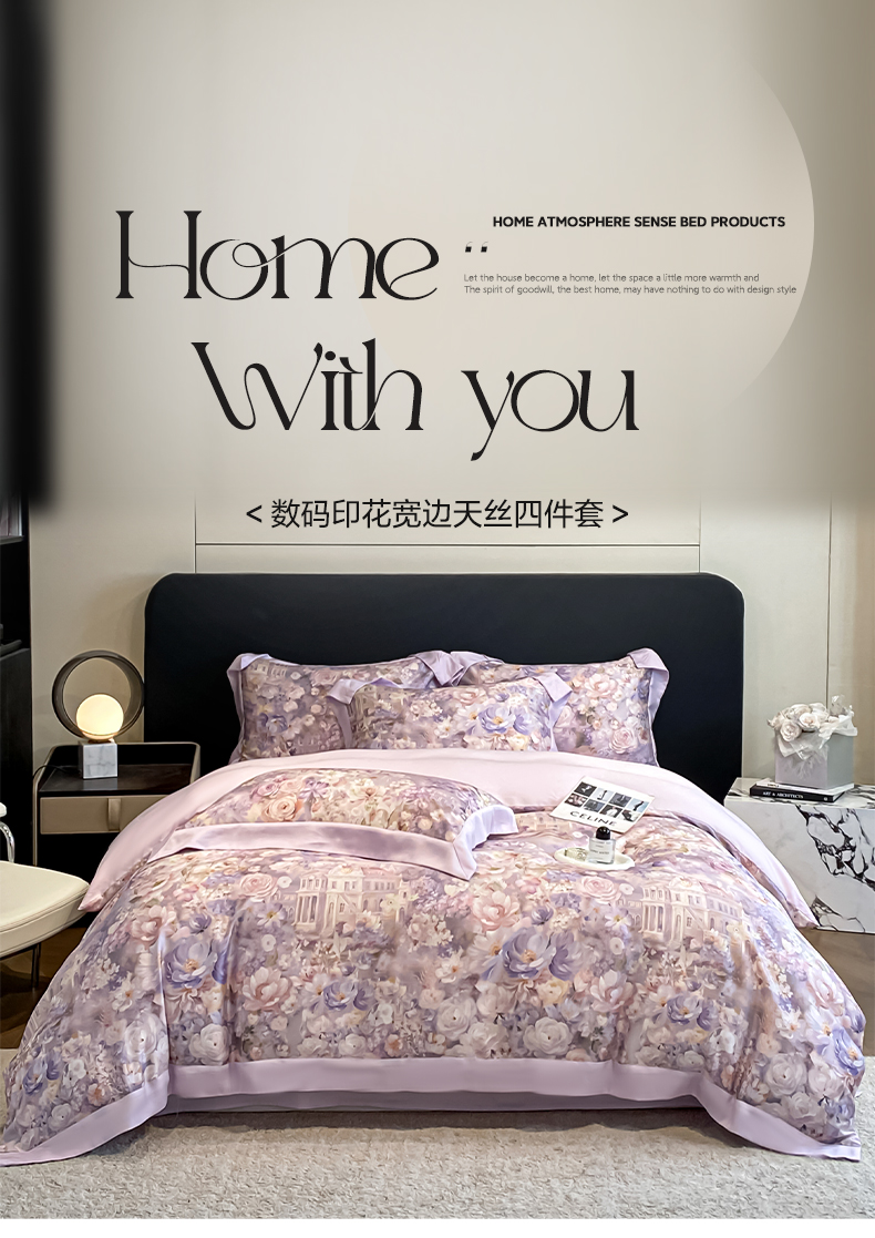 (总)博纳家纺 2026新款数码印花天丝宽边四件套,半夏,花舞蝶,卡罗拉,流光-粉,流光-天蓝,塞纳
