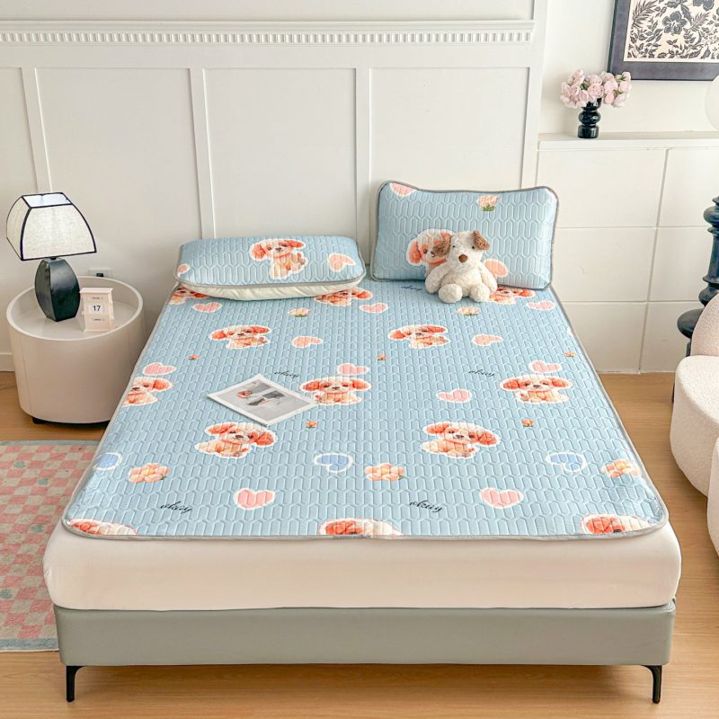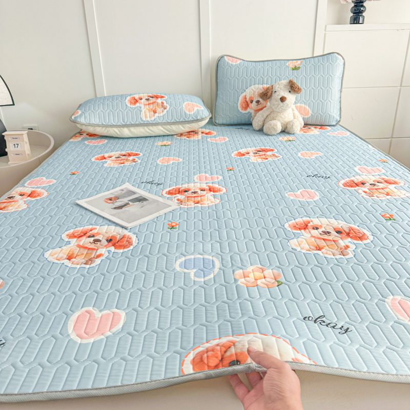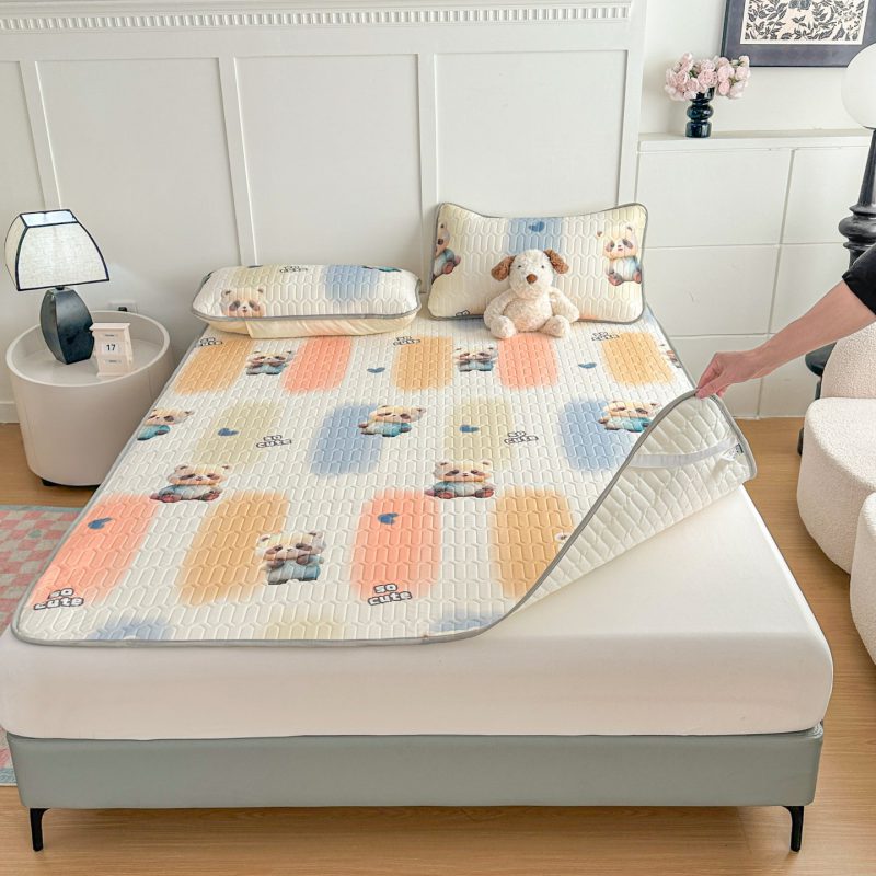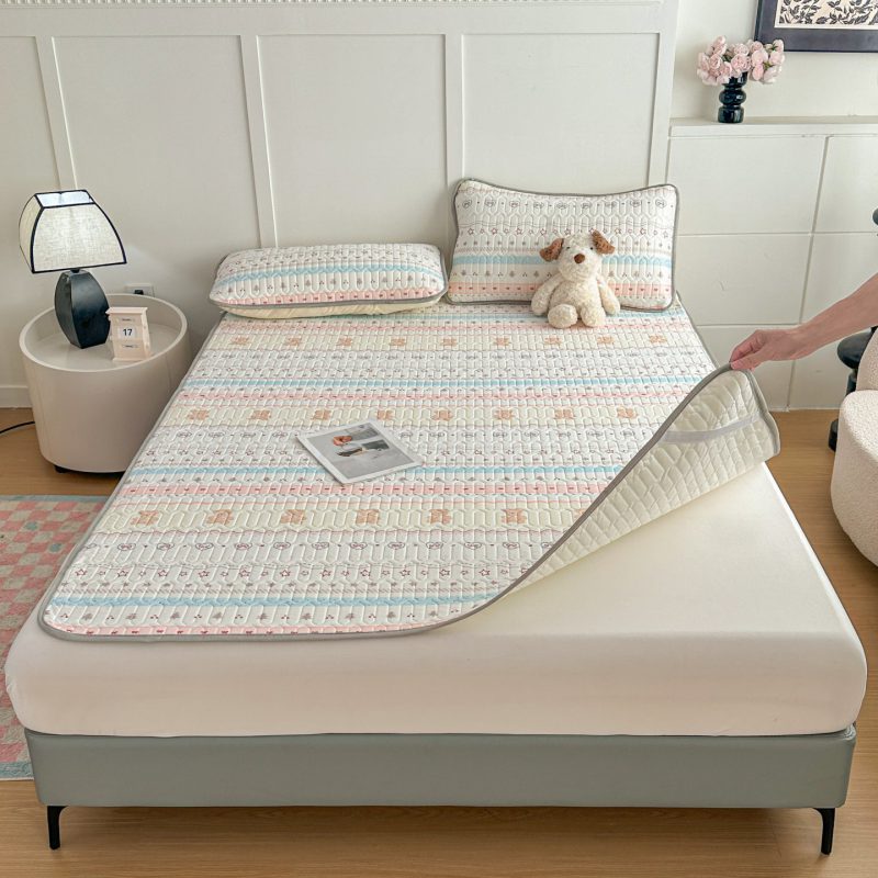 商品名称:梵克保罗 2026新款凉感丝乳胶凉席印花三件套绑带款乳胶条席床单 豆沙