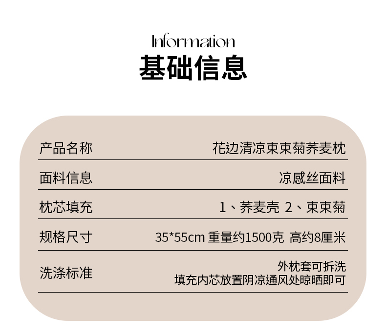 商品名称:(总)仁宇枕业 2026新款新品 花边清凉束束菊花草荞麦枕头枕芯