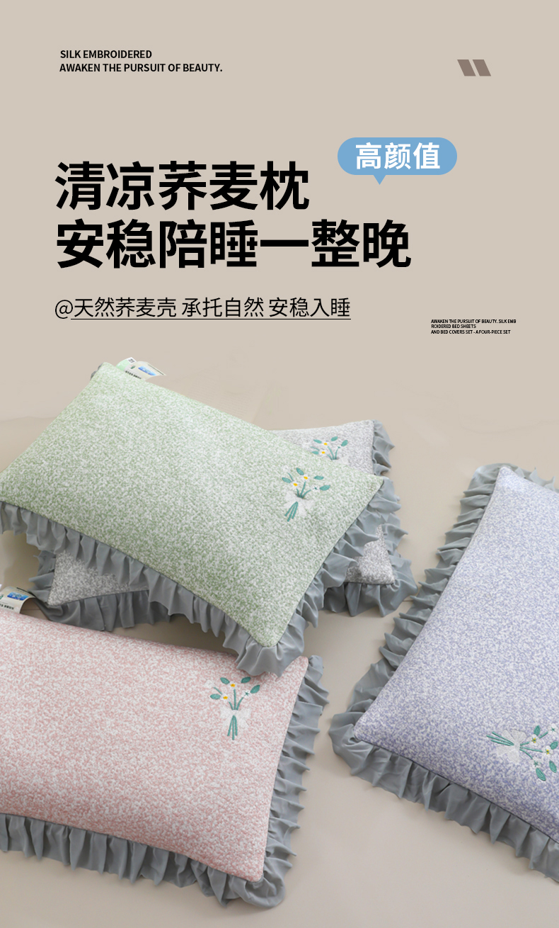 (总)仁宇枕业 2026新款新品 花边清凉束束菊花草荞麦枕头枕芯