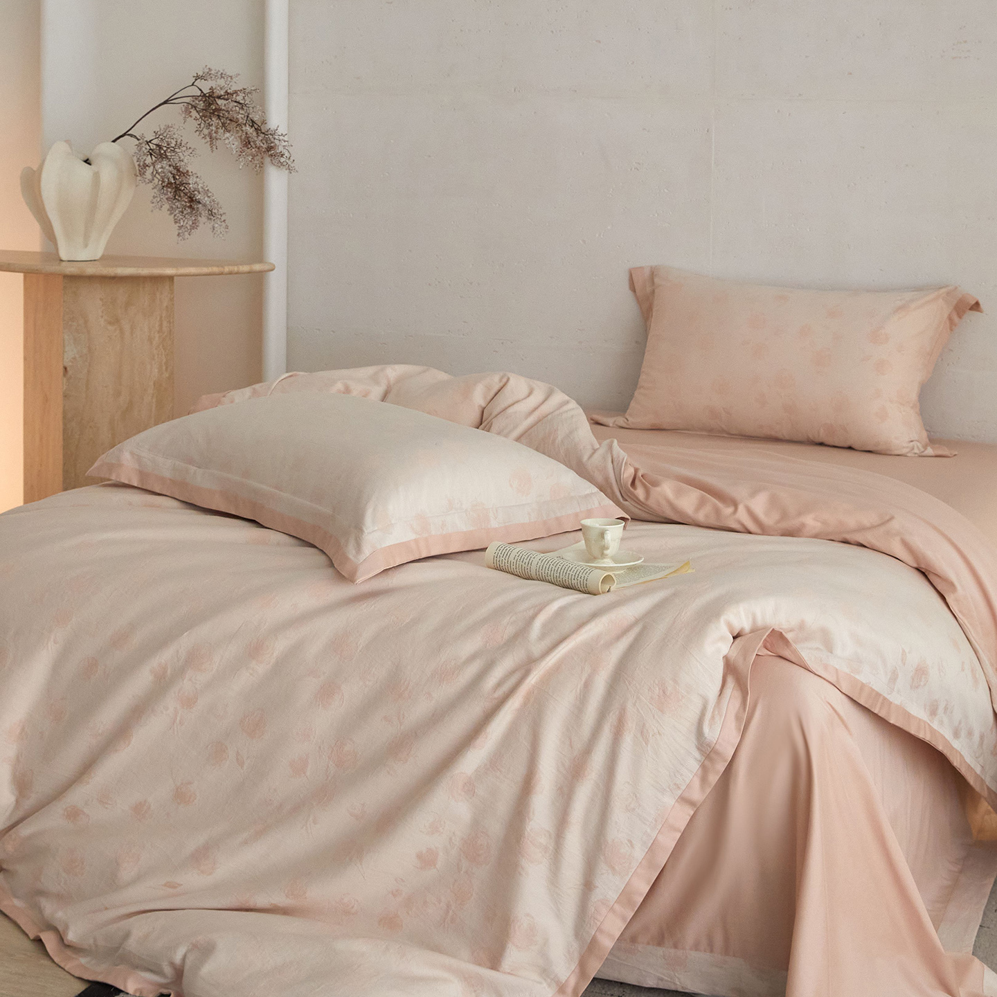 (总)JUICY 橘滋家纺 2026新款云柔奢韵全棉色织提花系列四件套,晨露玫影-春辰,晨露玫影-露水,石光集-卡其,石光集-莫蓝,石光集-雾灰,藤影垂,远山灰,秩序诗-卡其,秩序诗-摩登灰