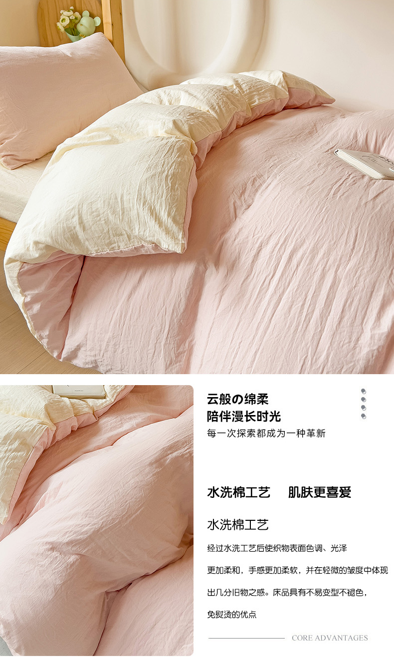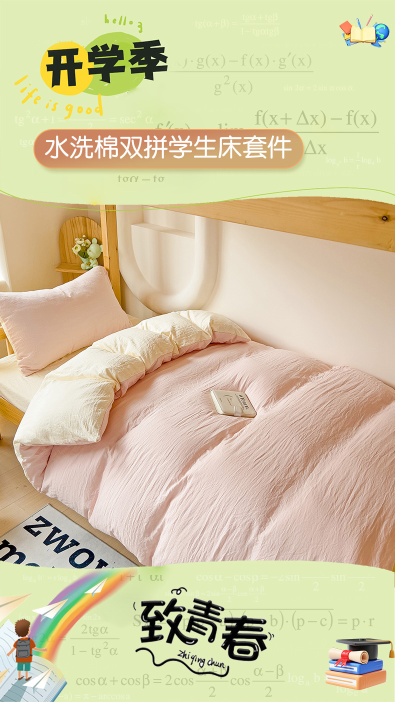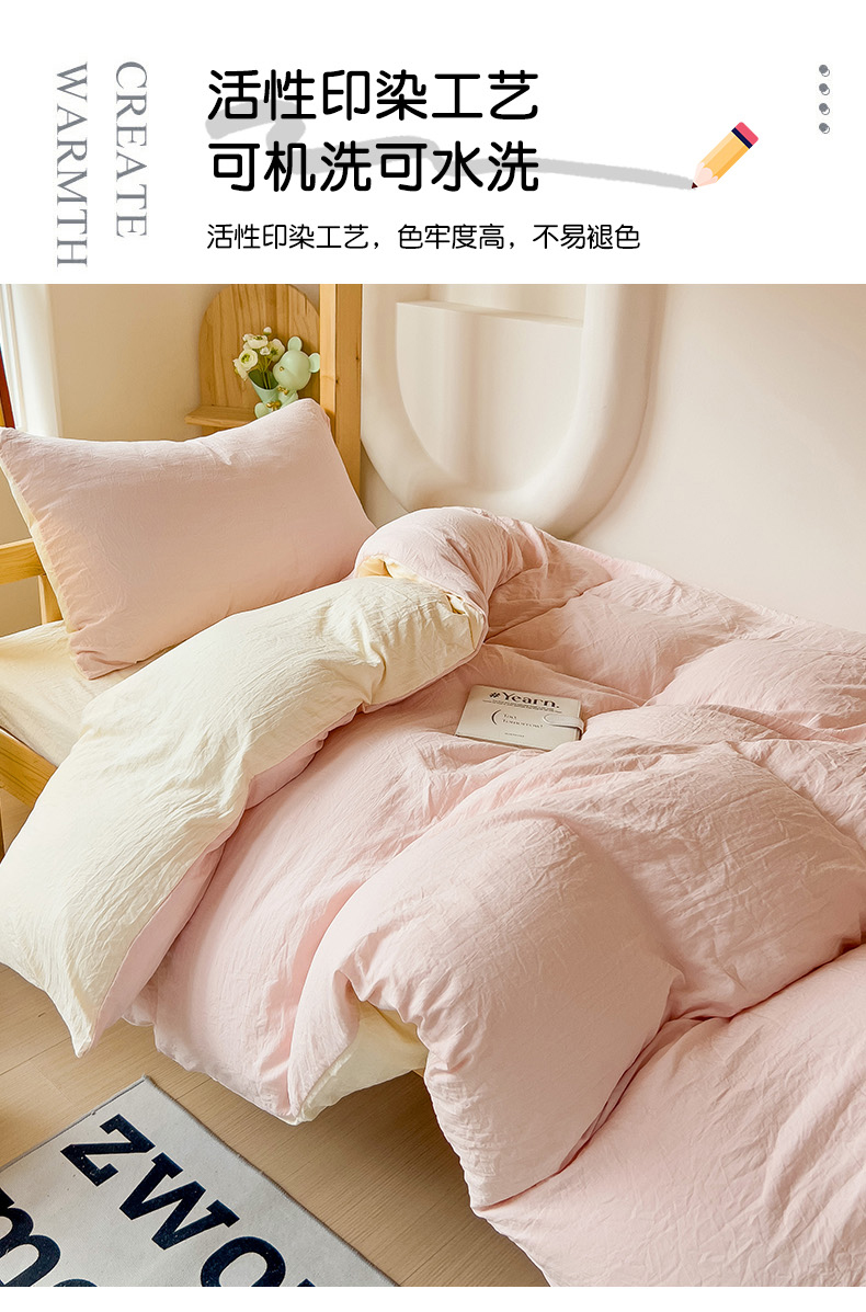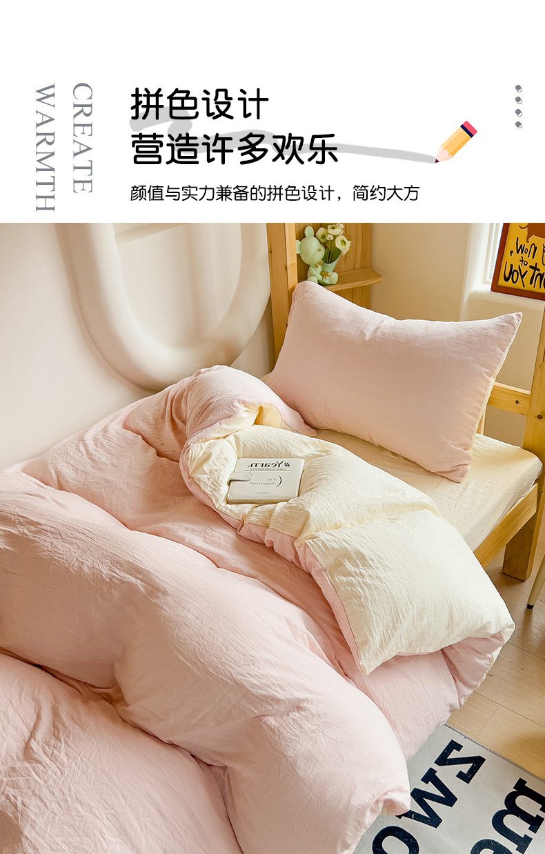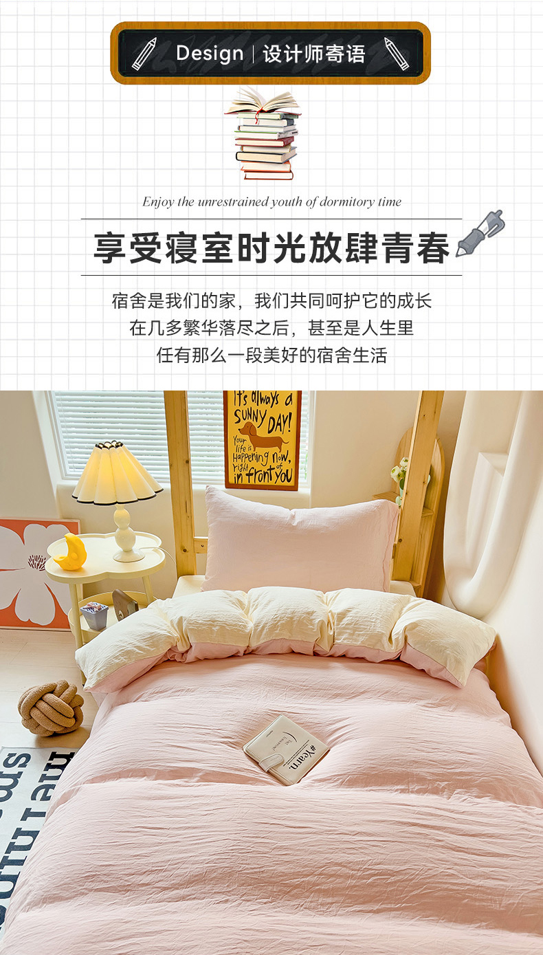 当前位置: 91家纺网 > 商品网购 > 床品套件 > 四件套 > 水洗棉四件套 > 欧妮家纺 2025新款纯色双拼水洗棉四件套学生宿舍上下铺床单被套三件套床上用品-【含买家秀】 双拼系列-浅粉黄