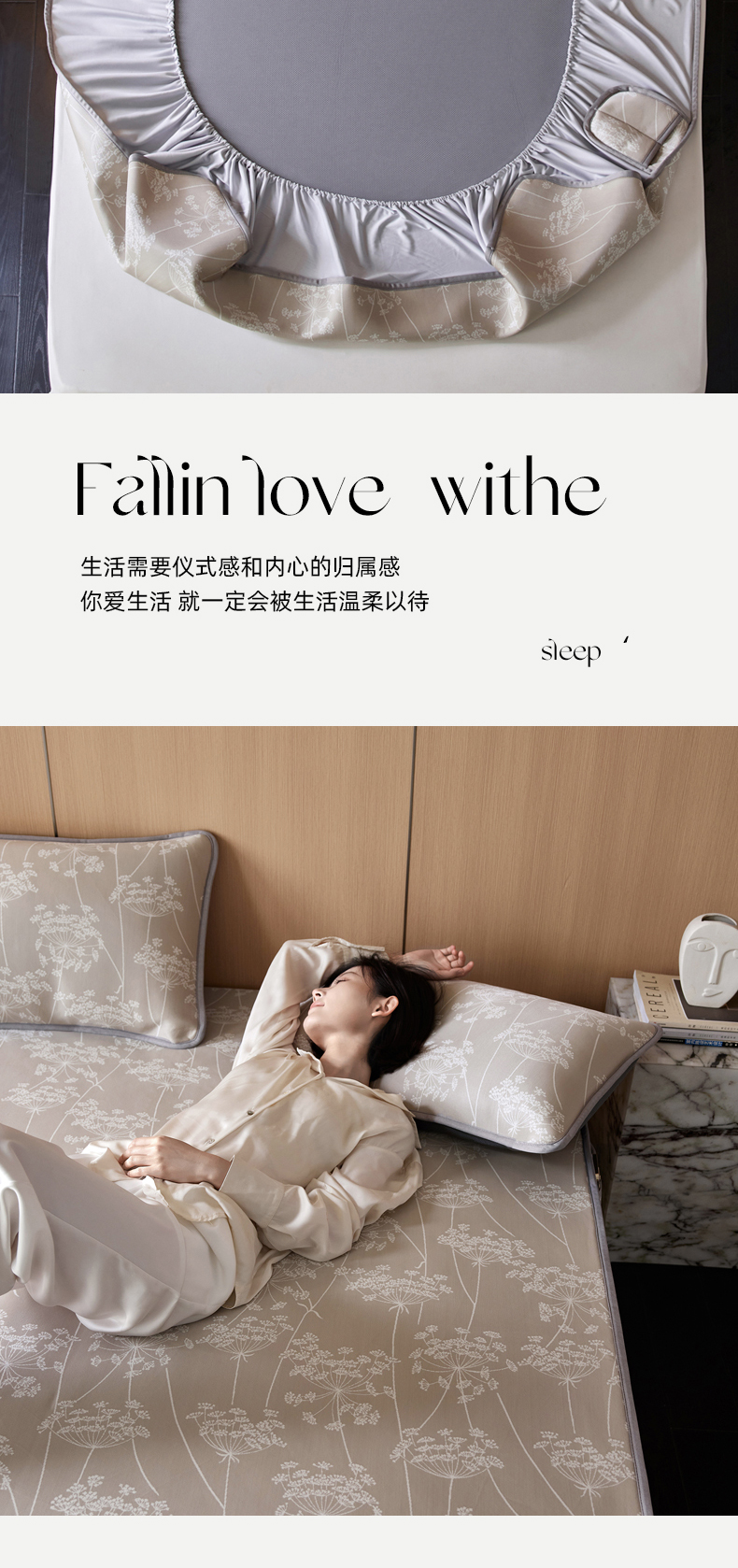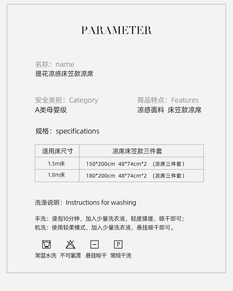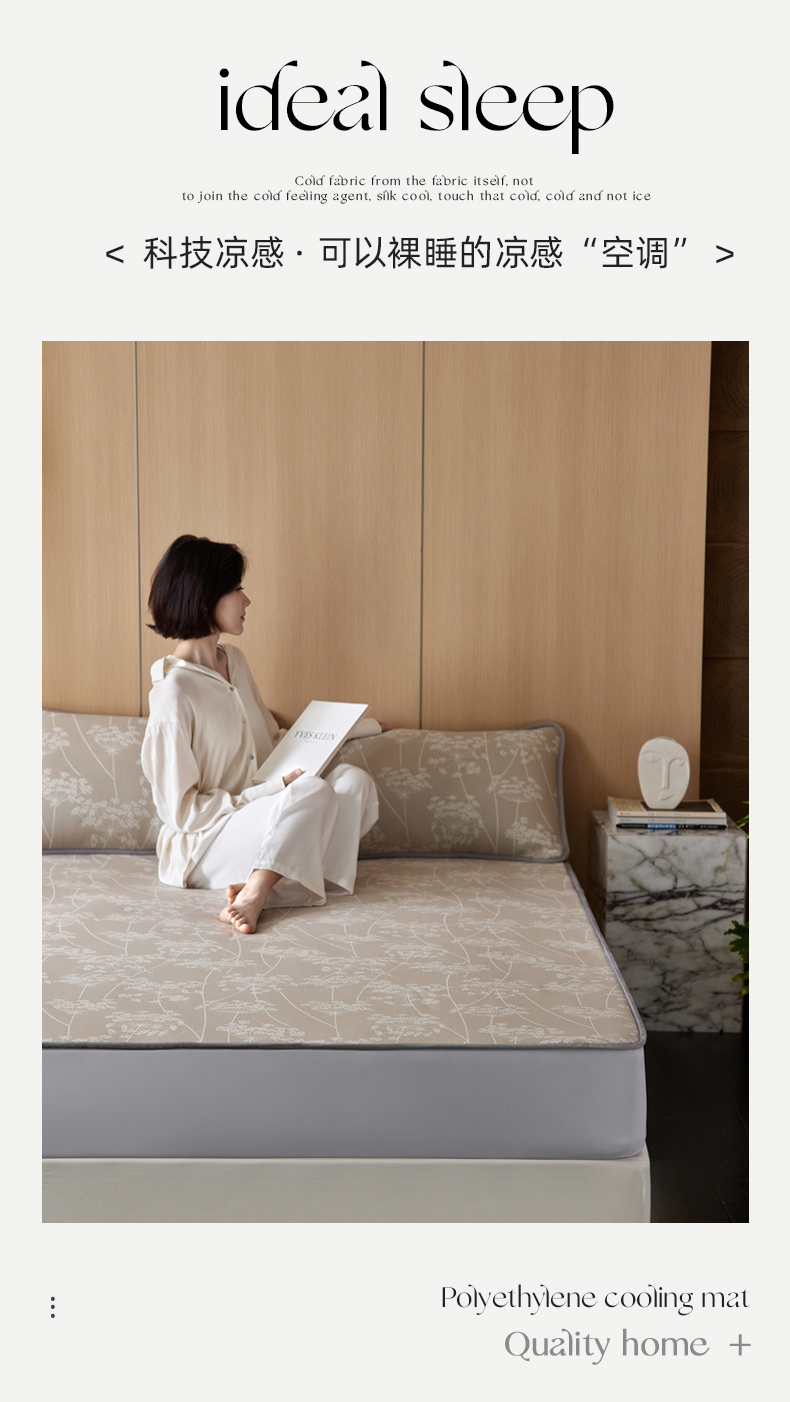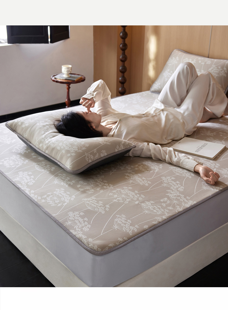 商品名称:千朵森 2026新款A类抗菌冰岛冰感丝床笠款凉席三件套 风格二 冰岛-浅茶杏