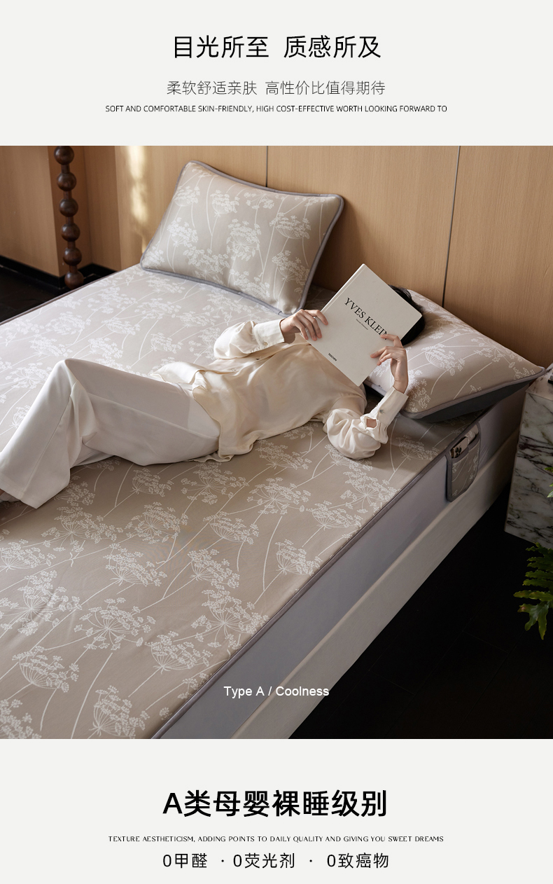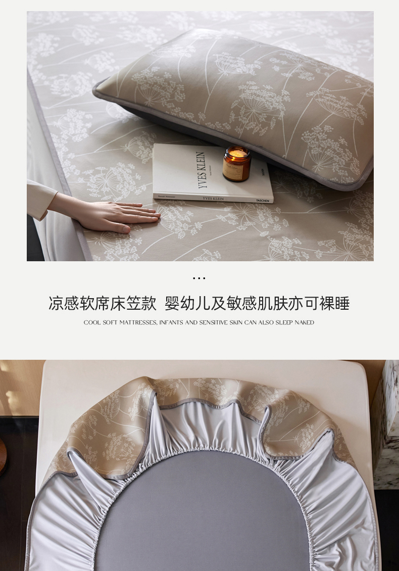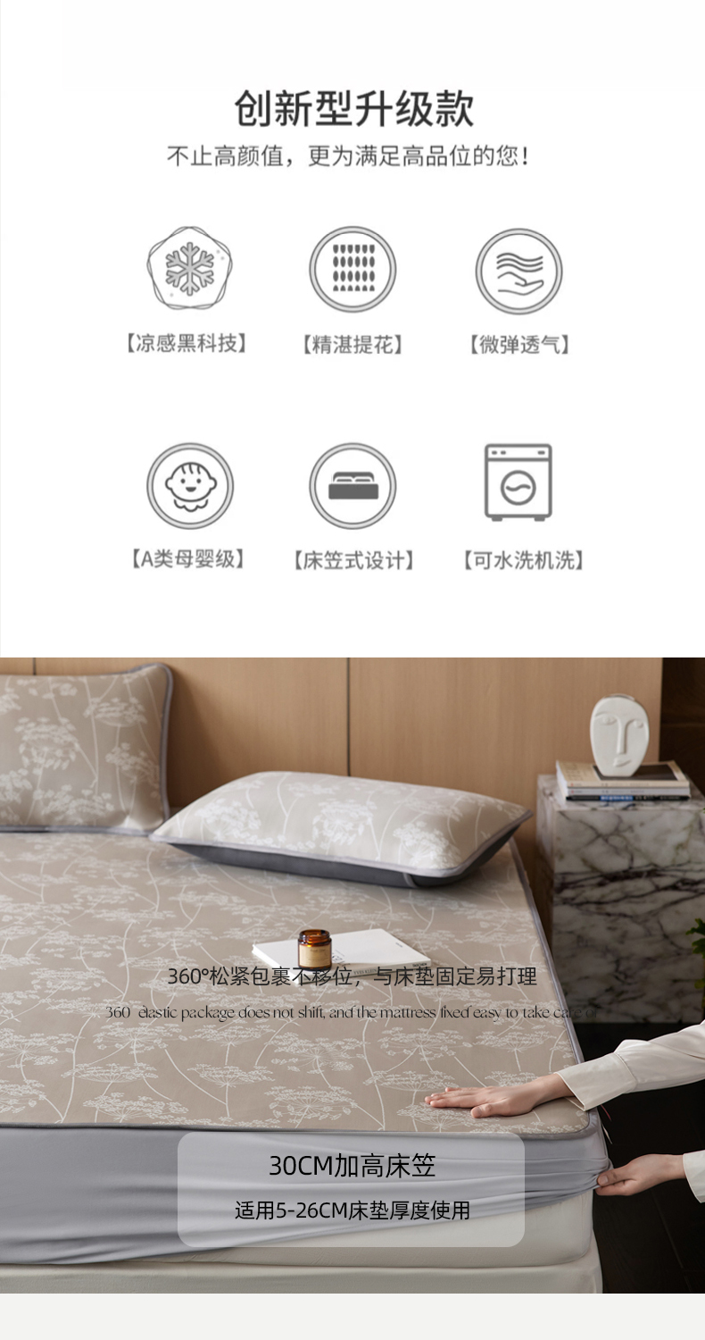 (总)千朵森 2026新款A类抗菌冰岛冰感丝床笠款凉席三件套 风格二,冰岛-暮夜蓝,冰岛-浅茶杏,冰岛-晴空蓝,冰岛-山茶灰,冰岛-山梗灰