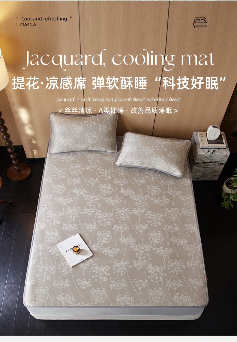 千朵森 2026新款A类抗菌冰岛冰感丝床笠款凉席三件套 风格二 冰岛-浅茶杏