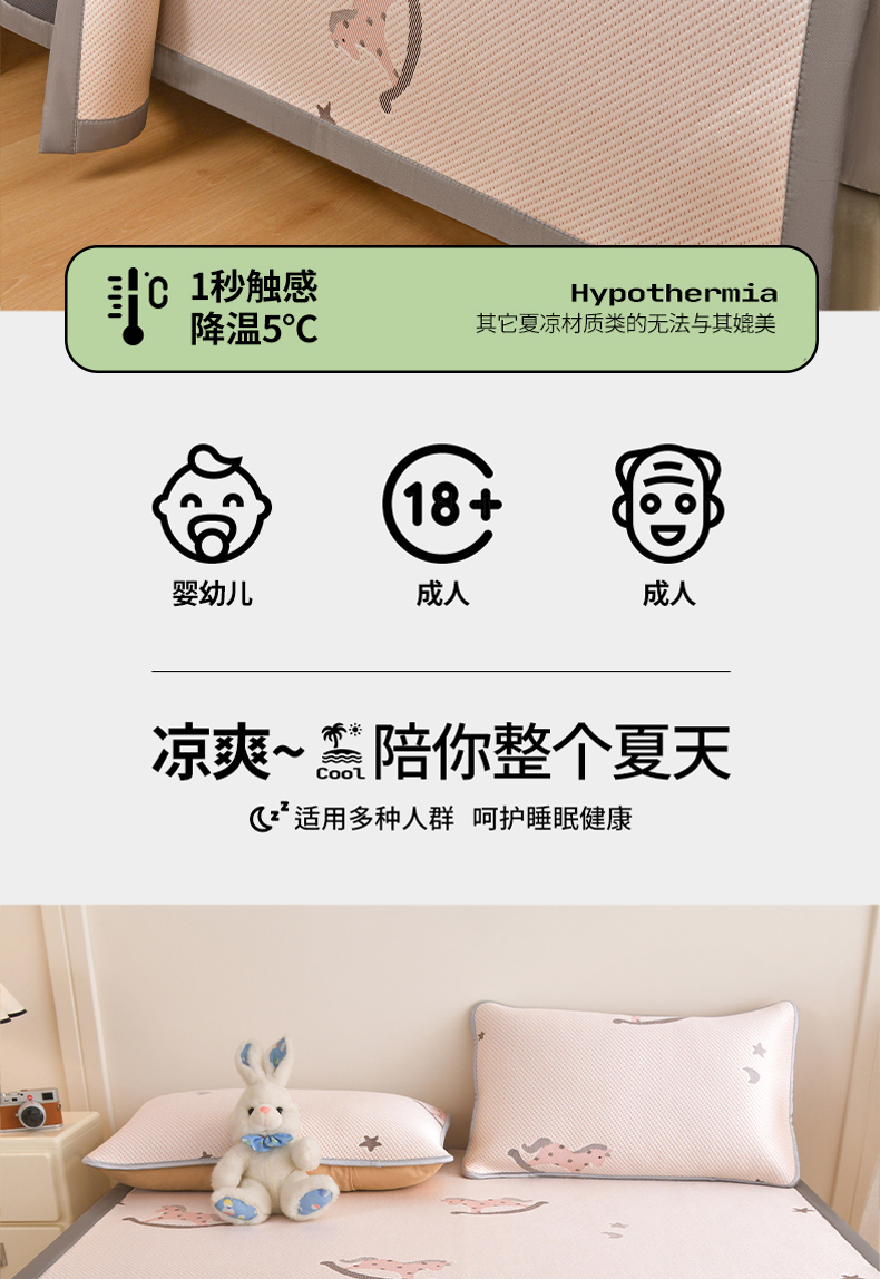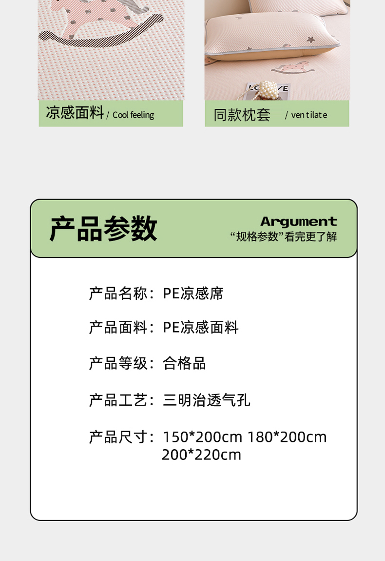 商品名称:金艾草 2026新款PE冰豆豆席凉感凉席单件席子平铺款 凉豆豆凉席-小马粉