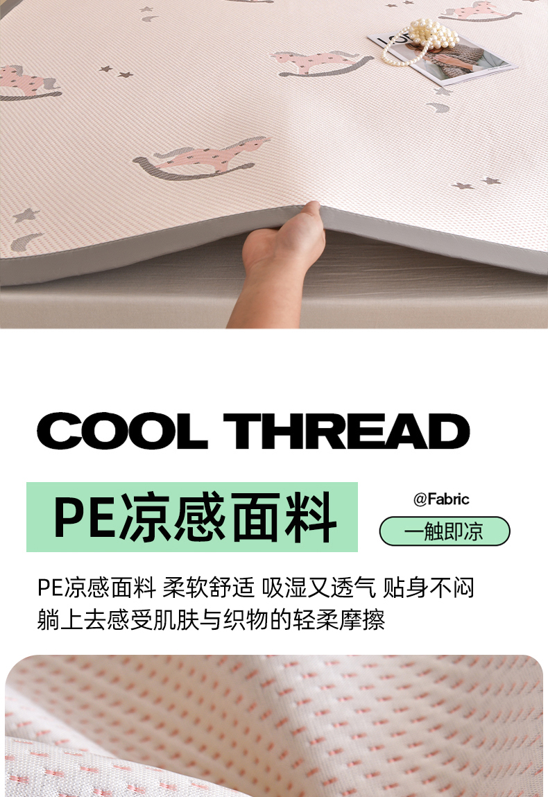 (总)金艾草 2026春夏新款PE凉感床裙款凉席席子空调软席,清新-粉色,清新-灰色,清新-蓝色,清新-绿色