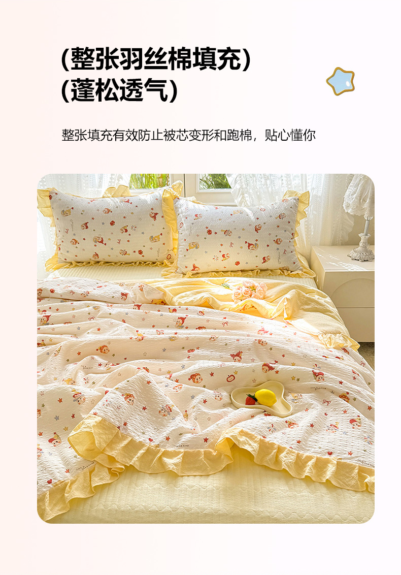 韩约家纺 2026新款泡芙棉床盖款夏被夏凉被空调被四件套 星星人