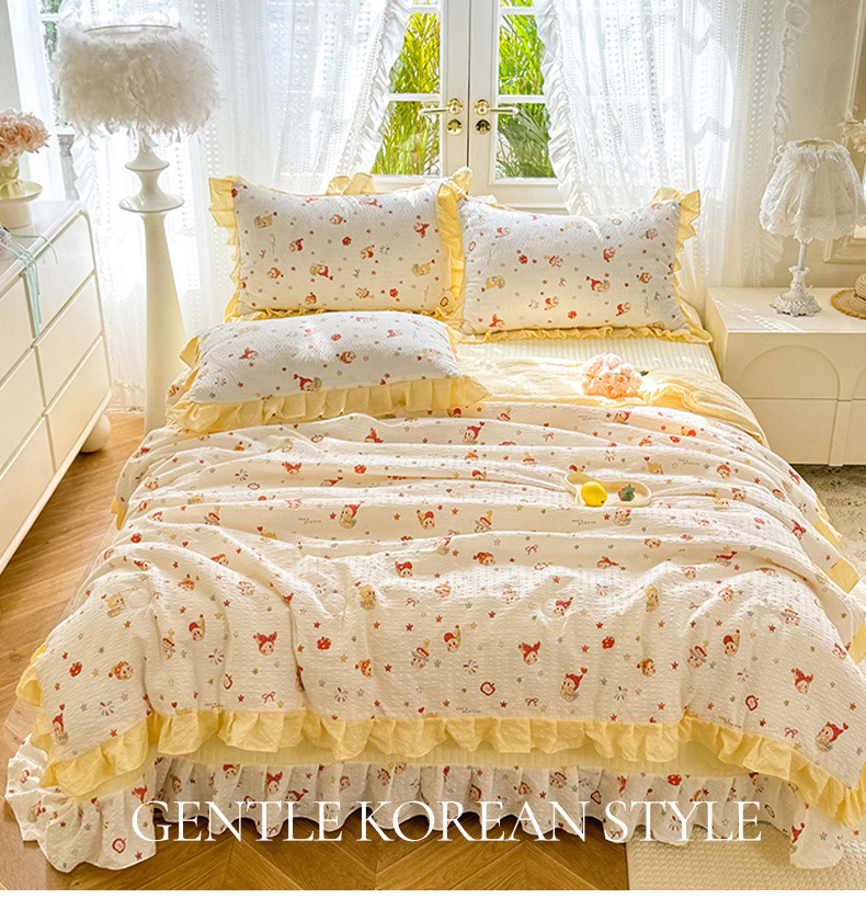 (总)韩约家纺 2026春夏新款韩式花边泡芙棉床单款夏被夏凉被空调被四件套,奶油泡芙,安暖如夏,宝妮,波点红,花春城,马上有钱,苏糖咖,旺旺,微花耳耳,星梦伙伴,星星人,紫色心情