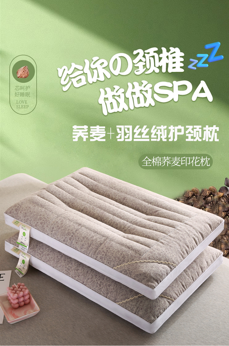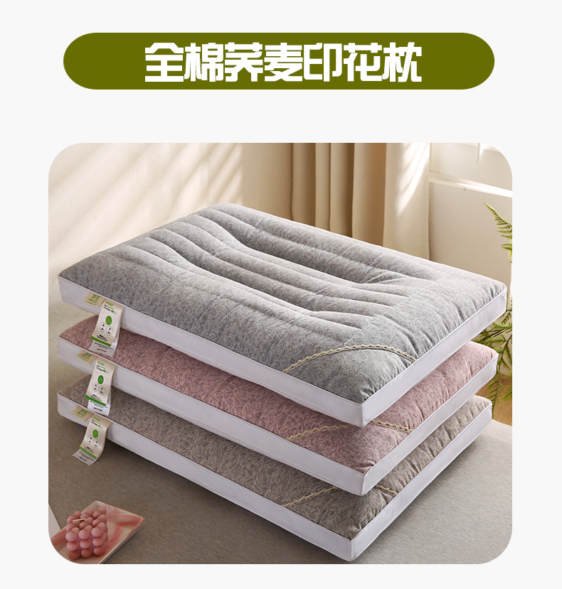 (总)贤内助家纺 2026新款全棉印花荞麦枕保健枕护肩枕枕头枕芯,组合图仅做展示不可下单,灰色,粉色,咖色