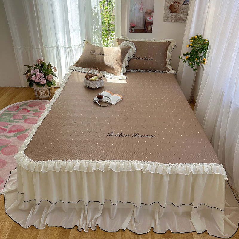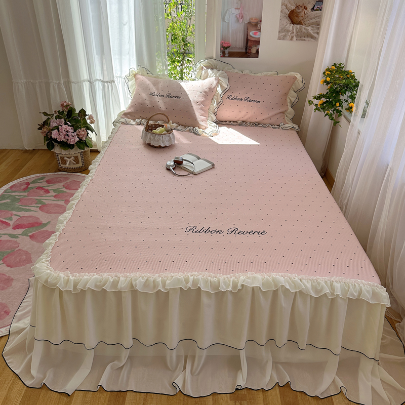 (总)觅糖家纺 2026新款缎带梦境韩风ins床裙款凉席系列凉席席子-波点奶芙,波点奶芙-白,波点奶芙-粉,波点奶芙-咖,波点奶芙-蓝