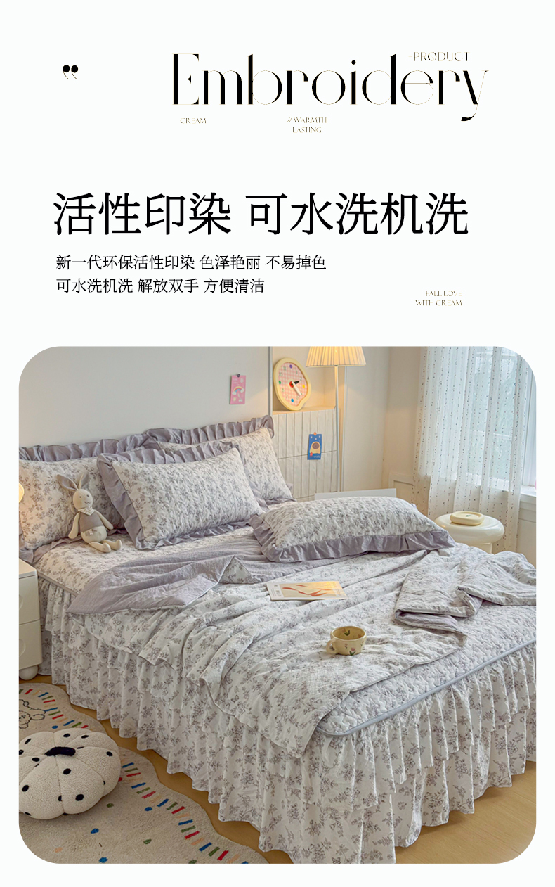 (总)铠畅 2026新款法式宽边水洗棉泡芙纱床盖款夏被四件套,春日小马,粉调爱心,粉雾波点,赫本豹影,红裙花影,红雾波点,红韵玫瑰,黄条萌宠,咖调爱心,玫瑰园,抹茶玫瑰,奶粉kt,奶格蝴蝶结,奶咖kt,奶蓝kt,森系花园,桃心木马,兔小姐,雾蓝波点,薰衣草女孩