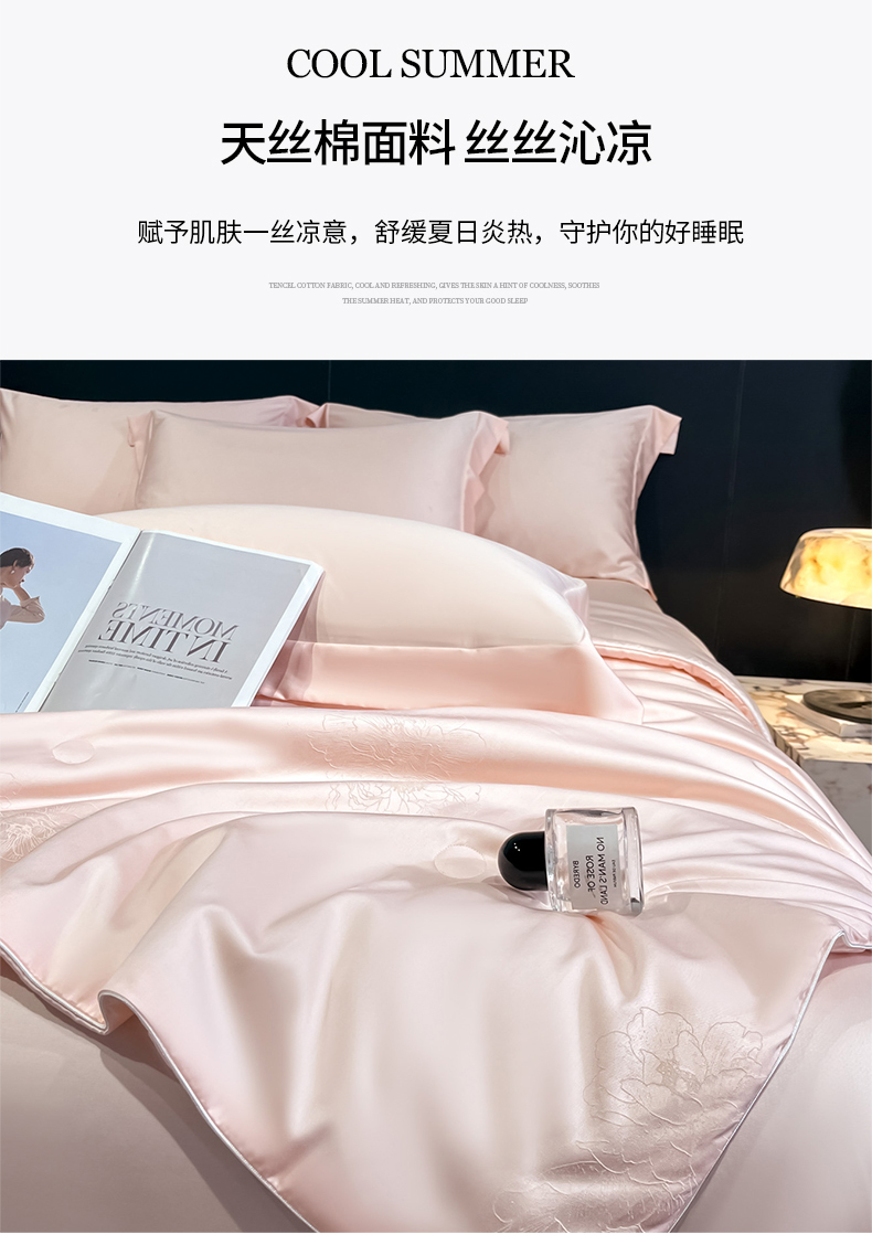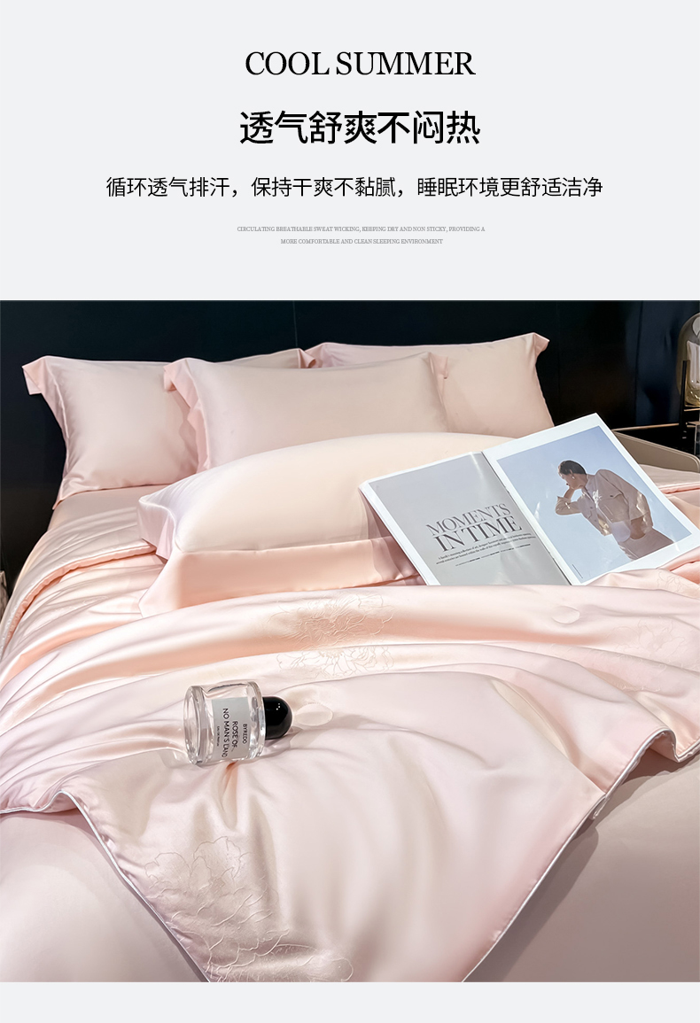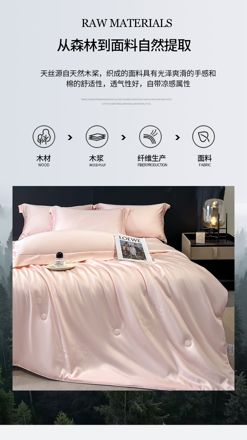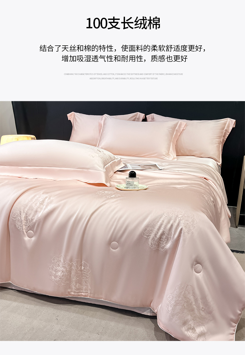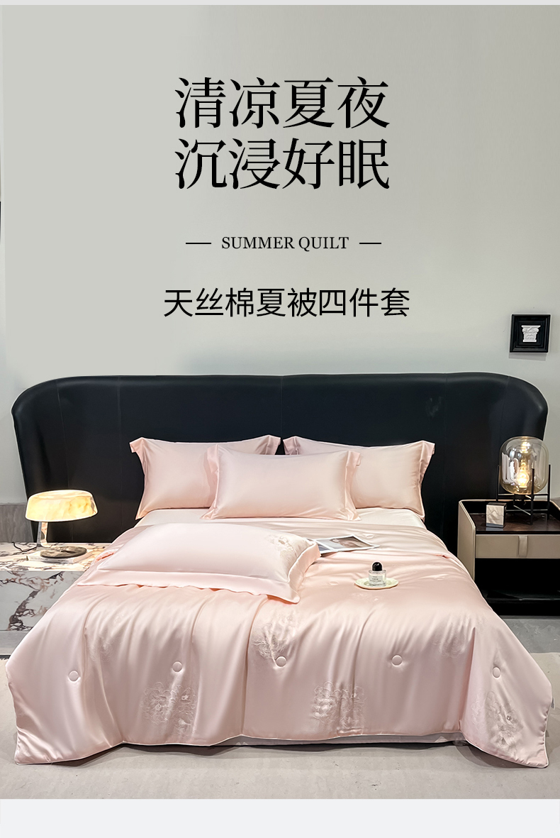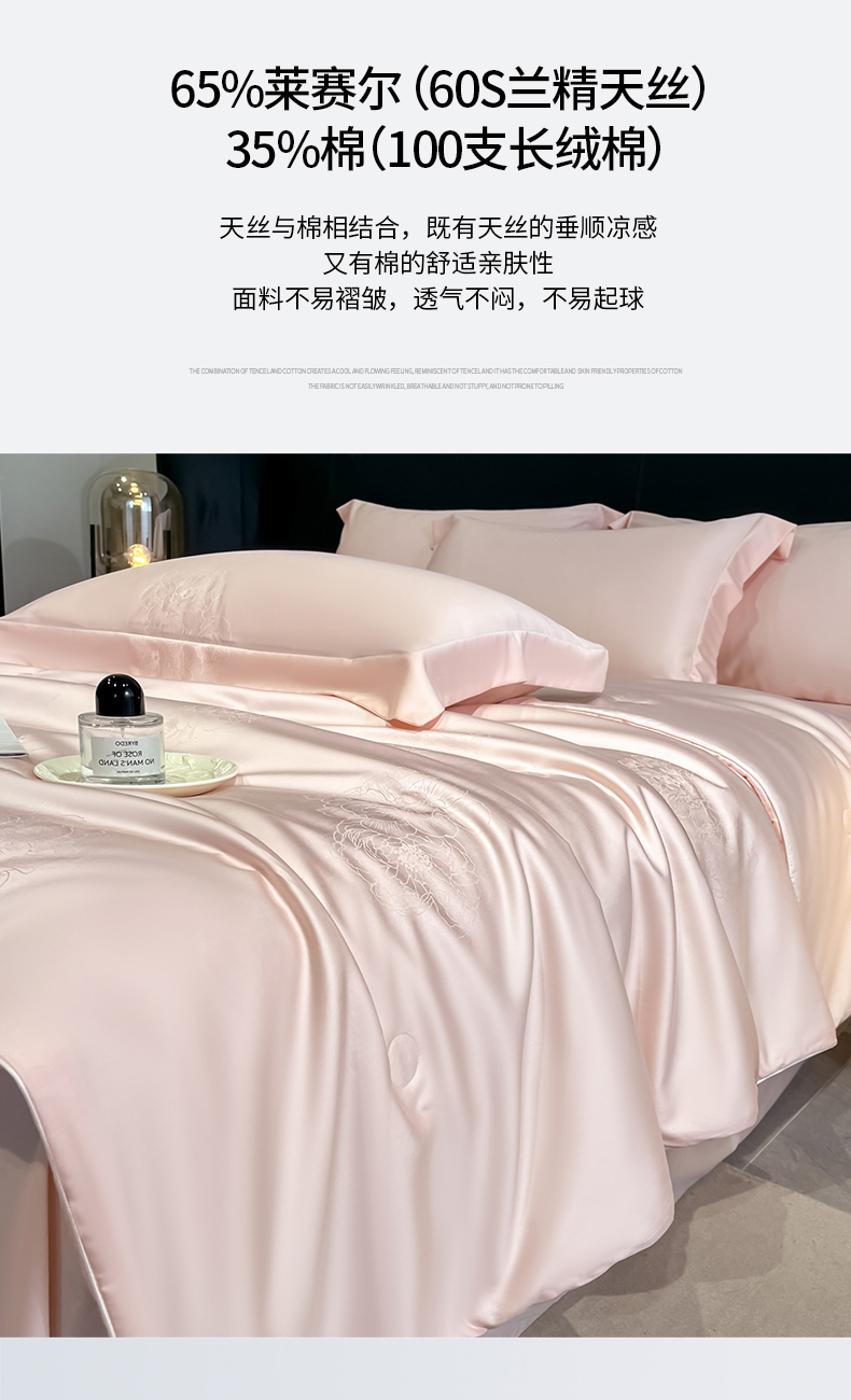 当前位置: 91家纺网 > 商品网购 > 床品套件 > 四件套 > 其它四件套 > 新方向 2026新款提花A类20%蚕丝天丝棉夏被四件套-花影风格二 花影-山茶粉
