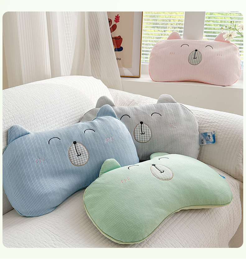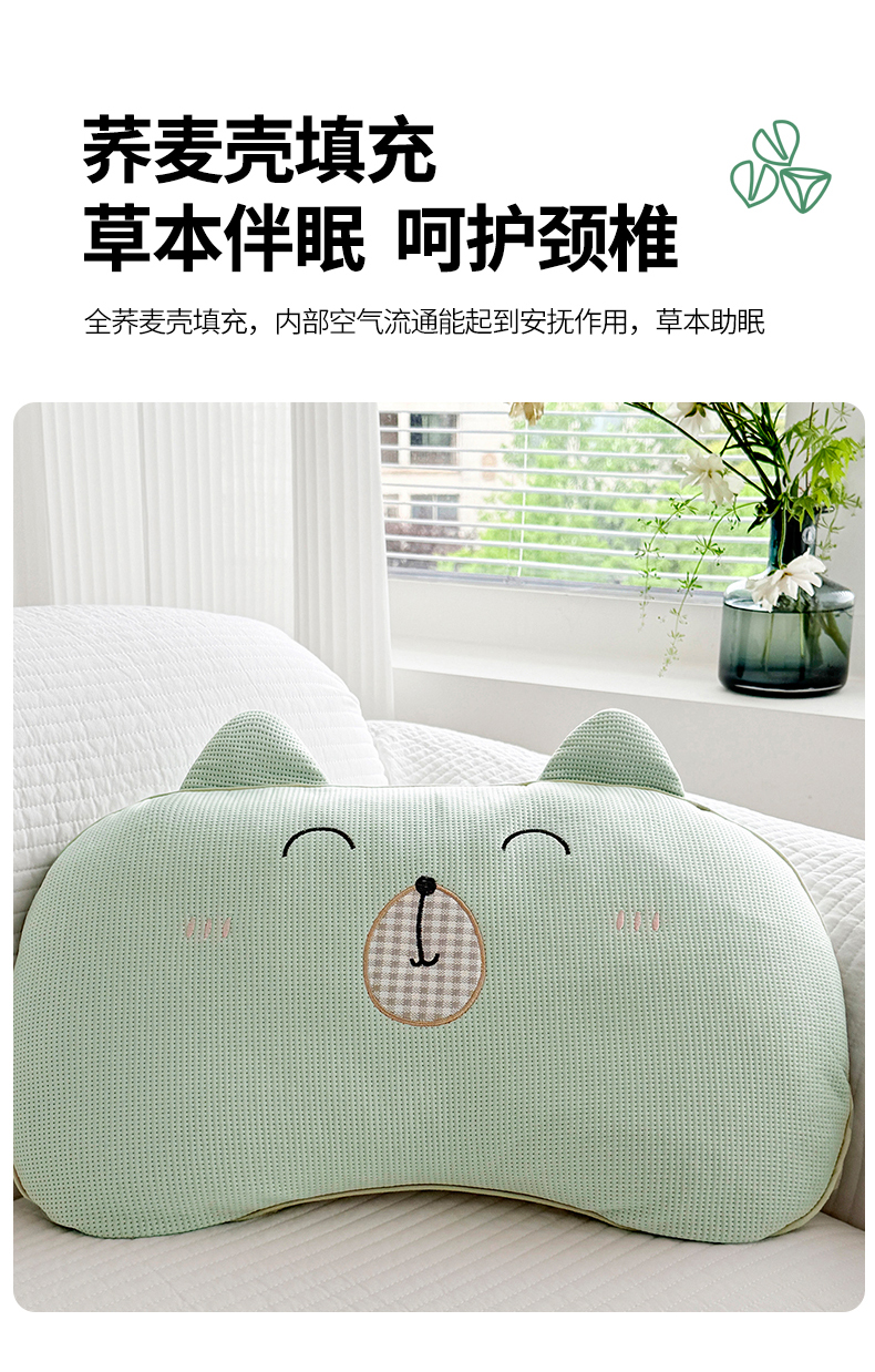 (总)蔻眠 凉感丝小萌猫荞麦护颈枕夏季凉豆豆儿童枕芯学生枕头,主图,小萌猫-花朵,小萌猫-三角