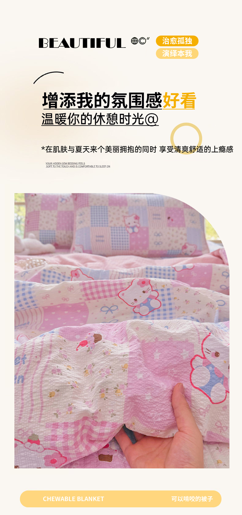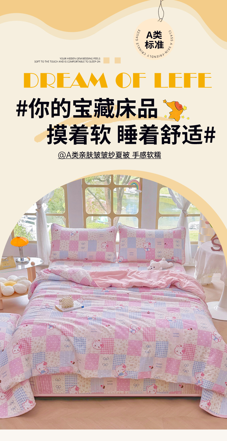 商品名称:悠米悠家 2026春夏新款泡泡纱印花夏被夏凉被空调被 kitty 格子铺