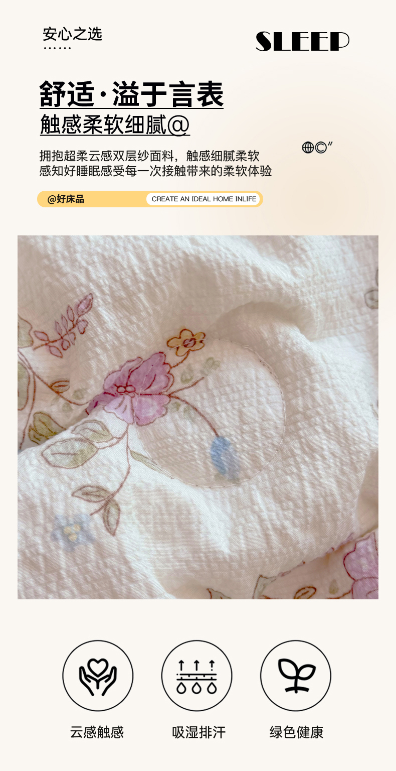 商品名称:悠米悠家 2026春夏新款泡泡纱印花夏被夏凉被空调被 少女田园诗