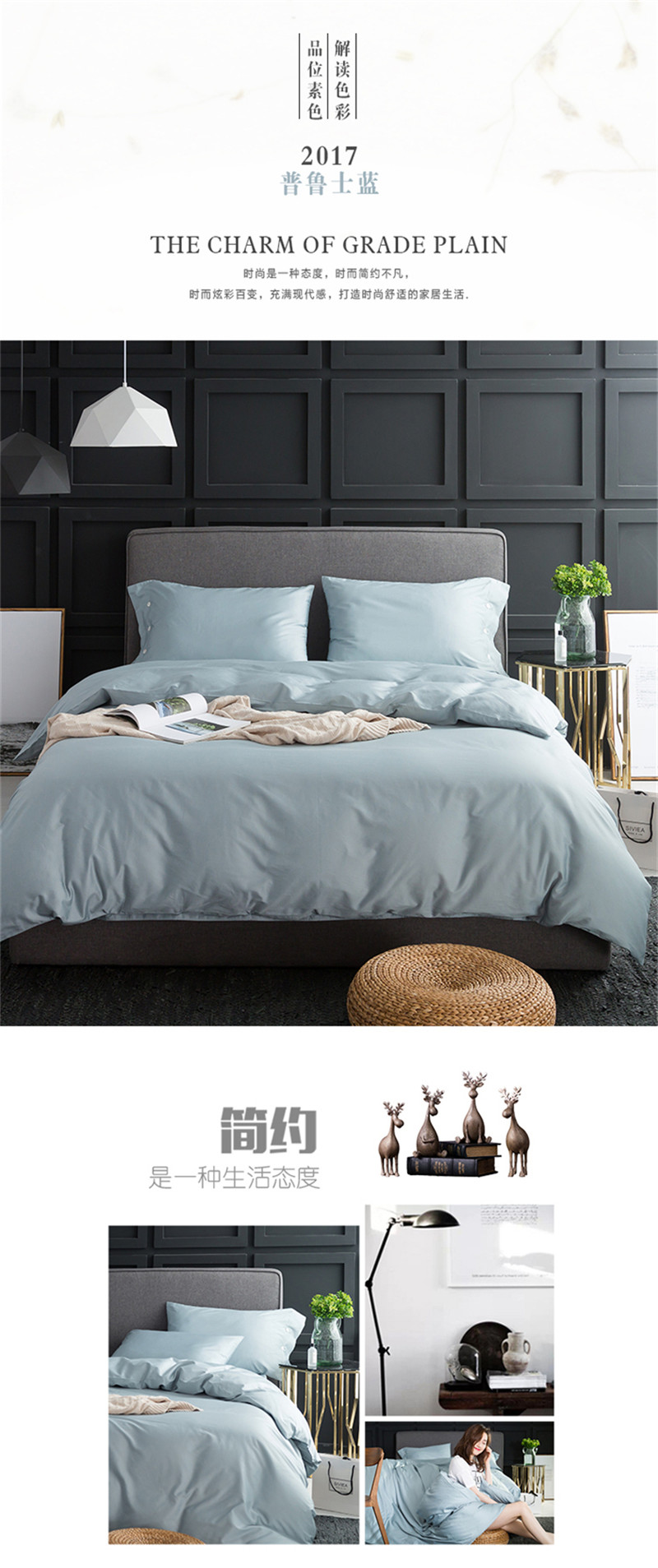 商品名称:涞澳家纺 长绒棉素色四件套 普鲁士蓝