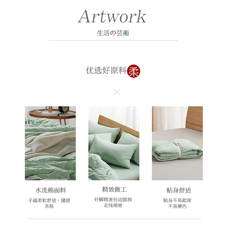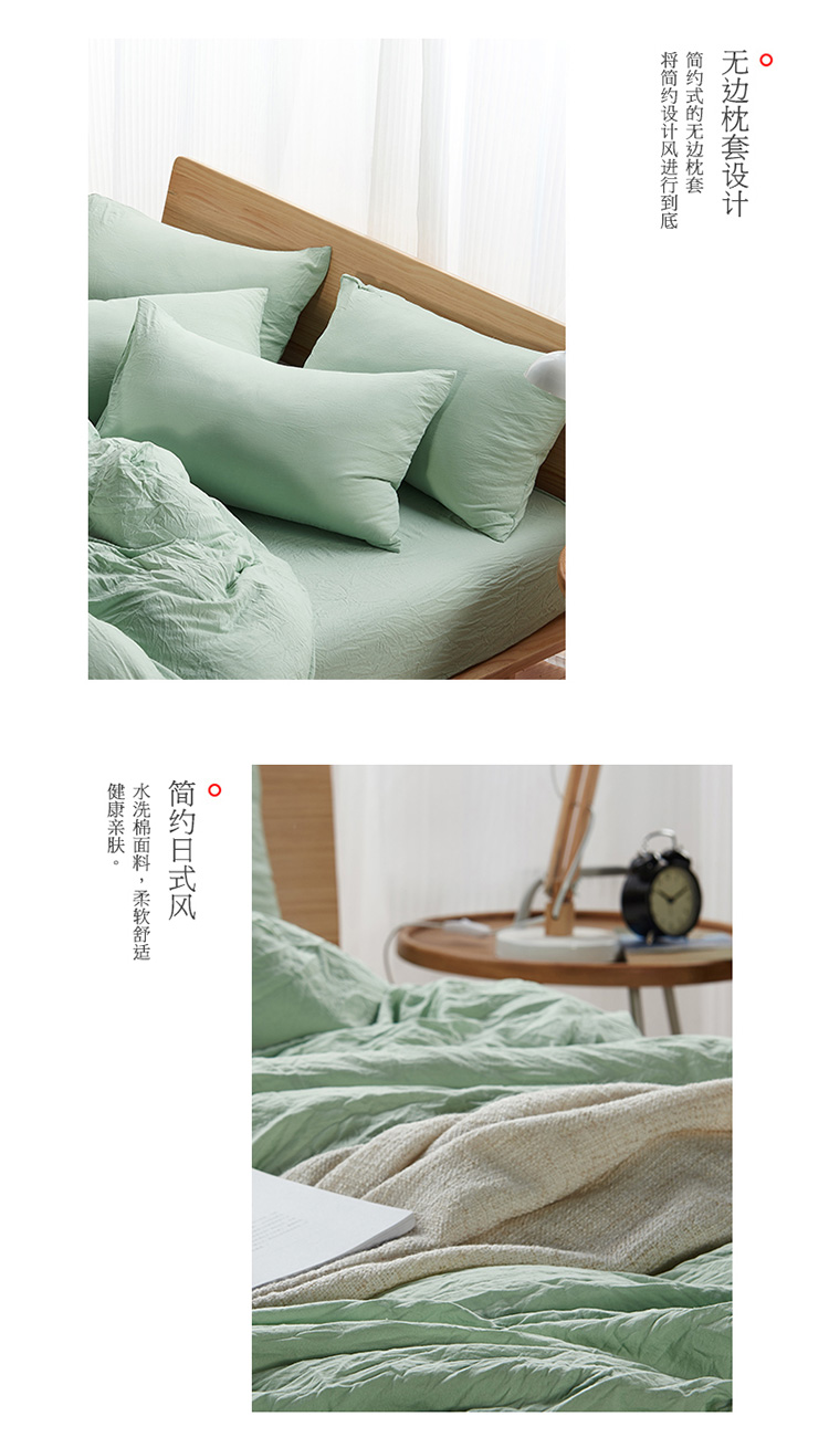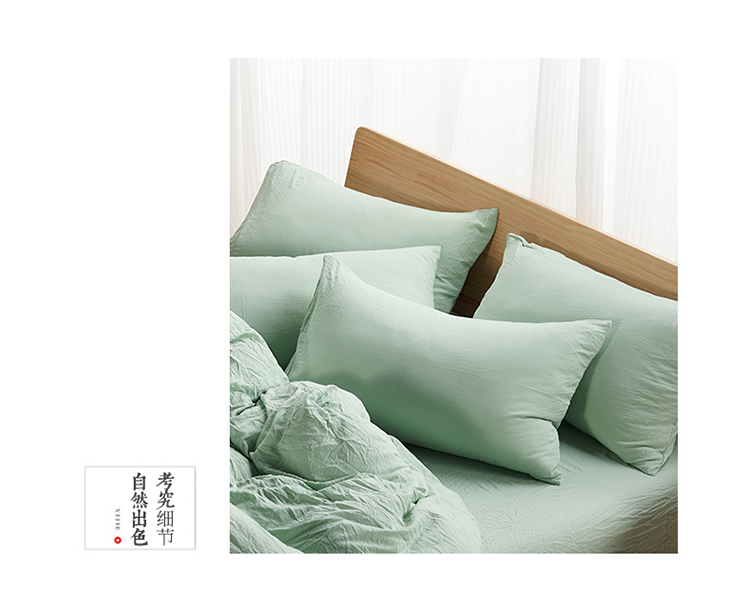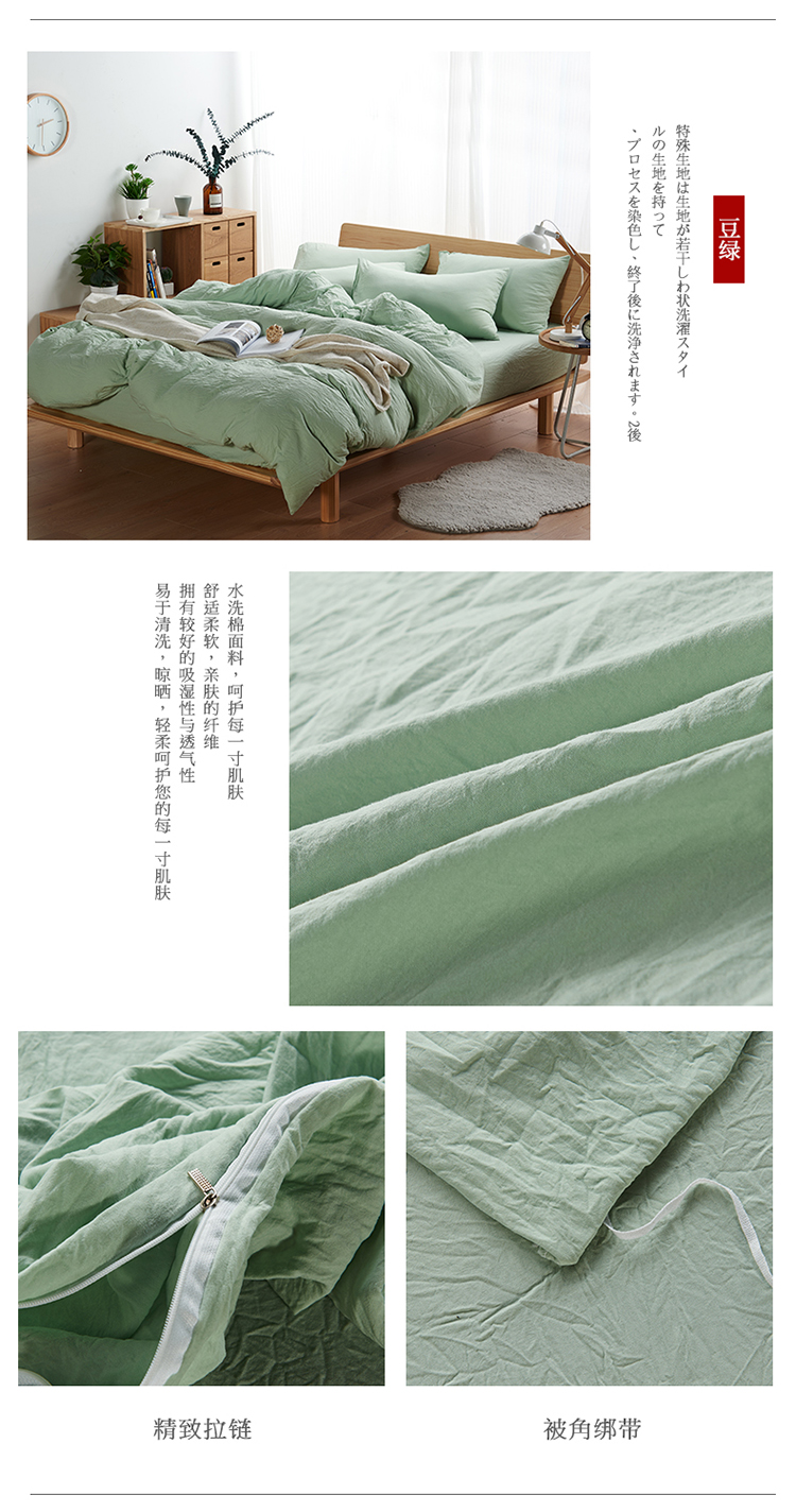 优宜家纺织 水洗棉四件套多规格(纯色系列)床单款纯色-豆绿