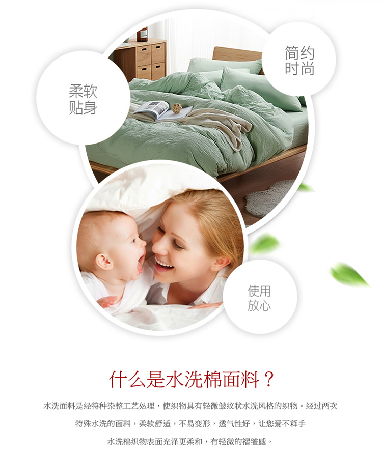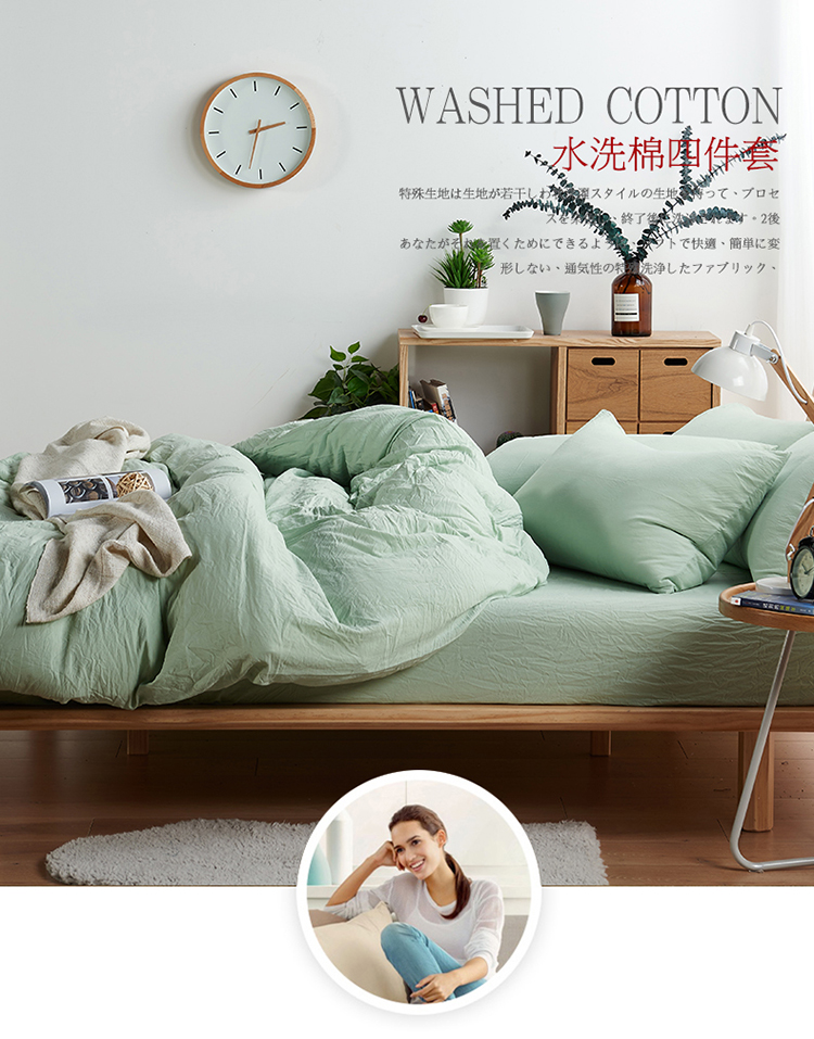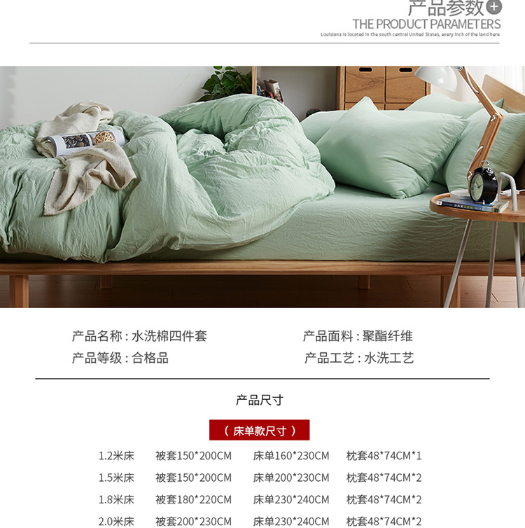 商品名称:优宜家纺织 水洗棉四件套多规格(纯色系列)床单款纯色-豆绿