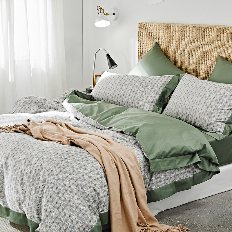 (总)涞澳家纺 2026新款全棉纯棉水洗棉纯色花边款四件套-珠若,珠若-米白,珠若-浅灰,珠若-浅绿,珠若-浅玉