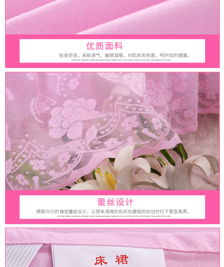 商品名称:情恒家纺 2019新款蕾丝床裙系列月满花香 粉色