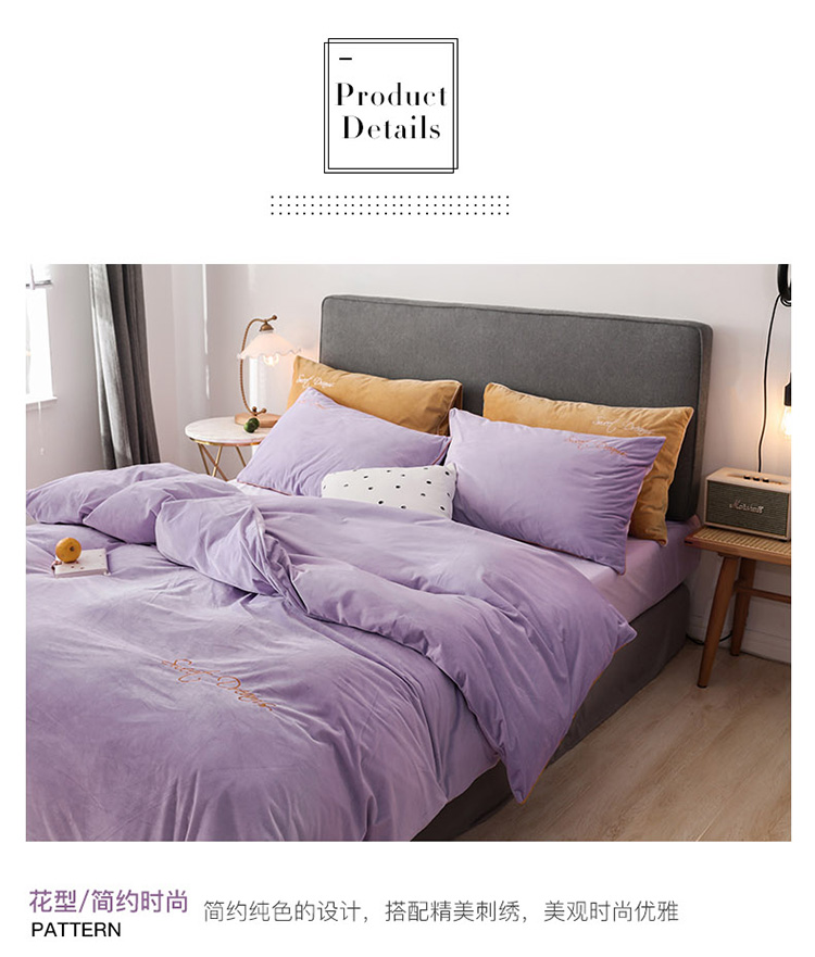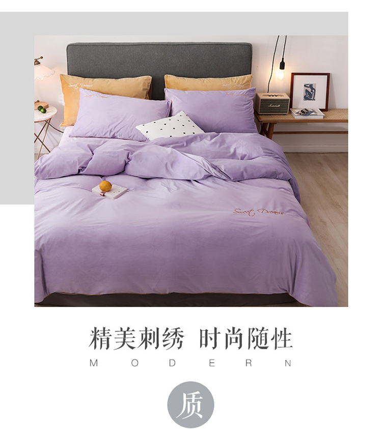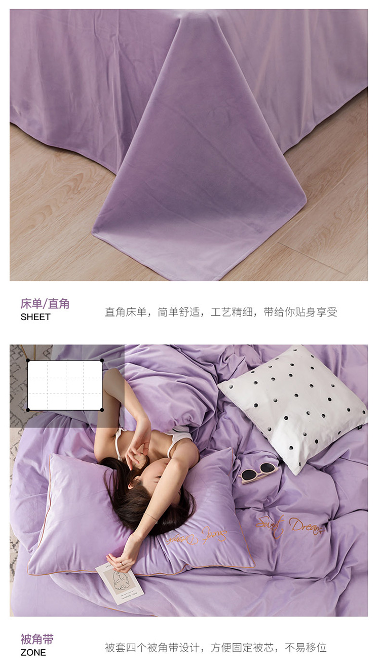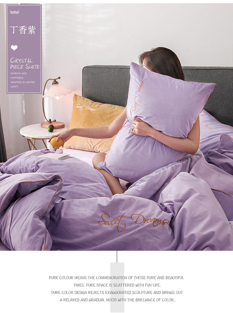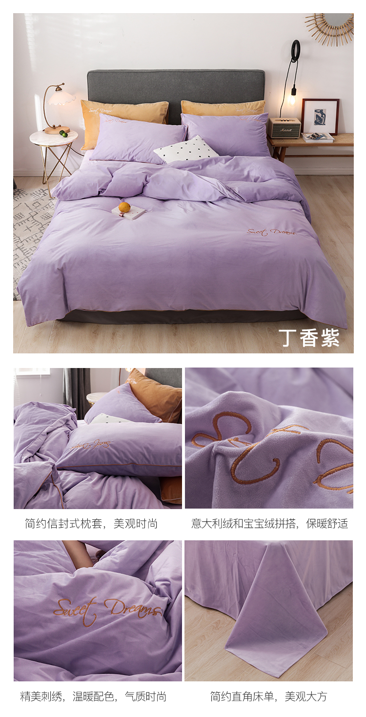 商品名称:爱缦 2019新款水晶绒丽丝绒绣花工艺款四件套 丁香紫