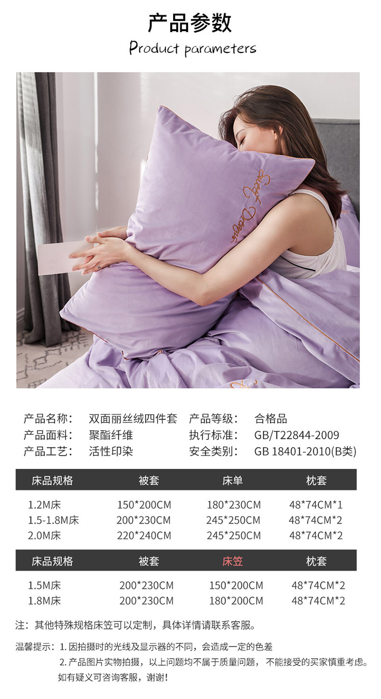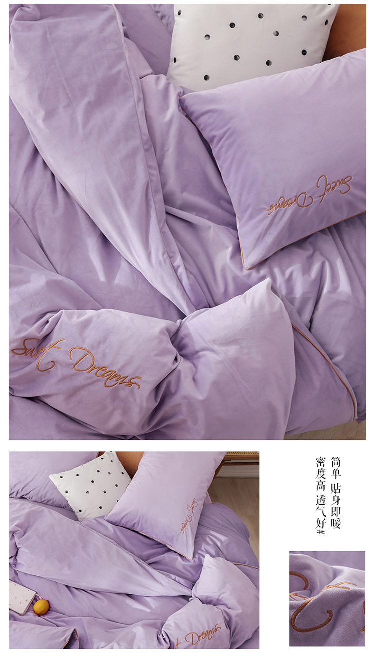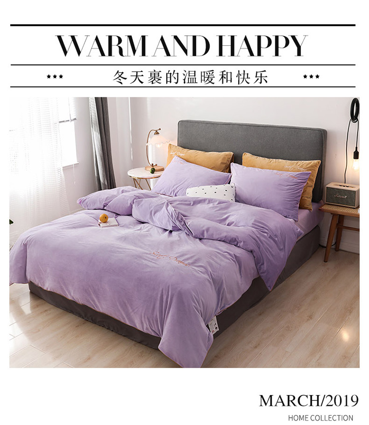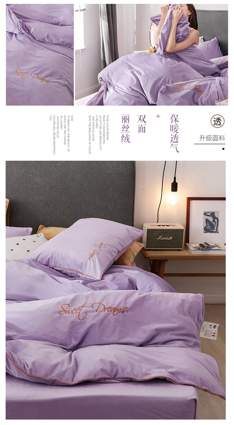 商品名称:爱缦 2019新款水晶绒丽丝绒绣花工艺款四件套 丁香紫