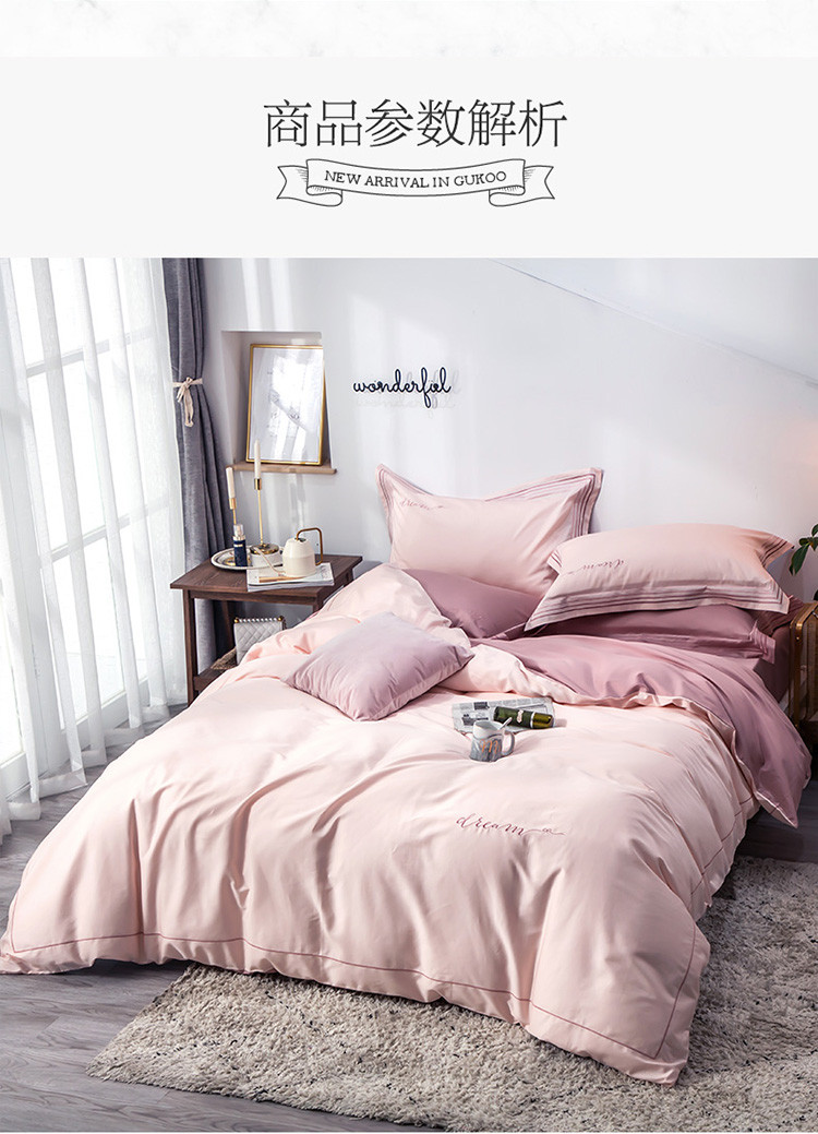 商品名称:瑞米家居 2019新款60长绒棉素色绣工艺系列四件套 梦辰