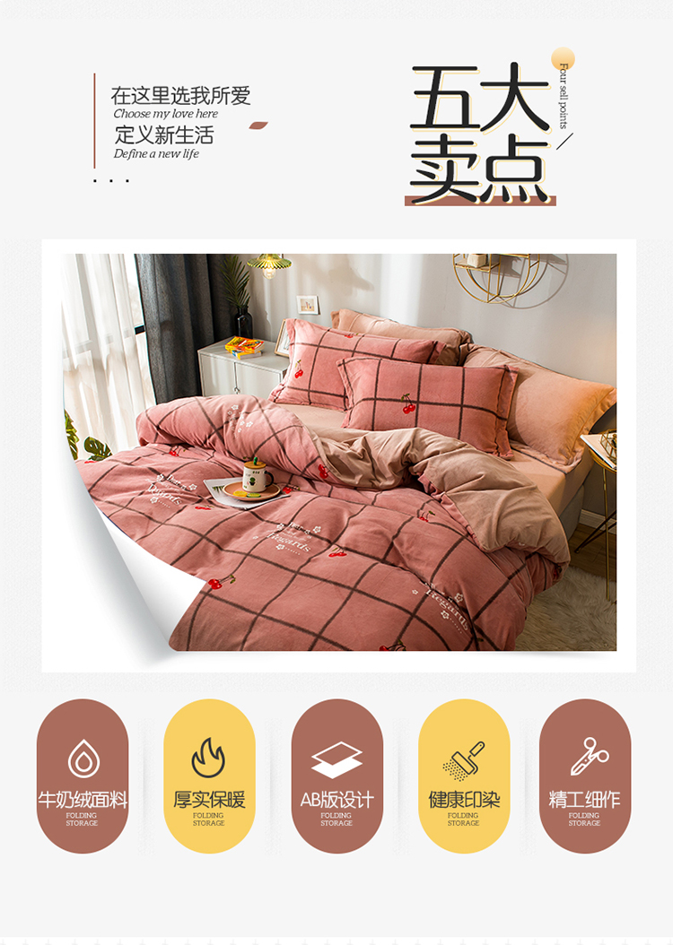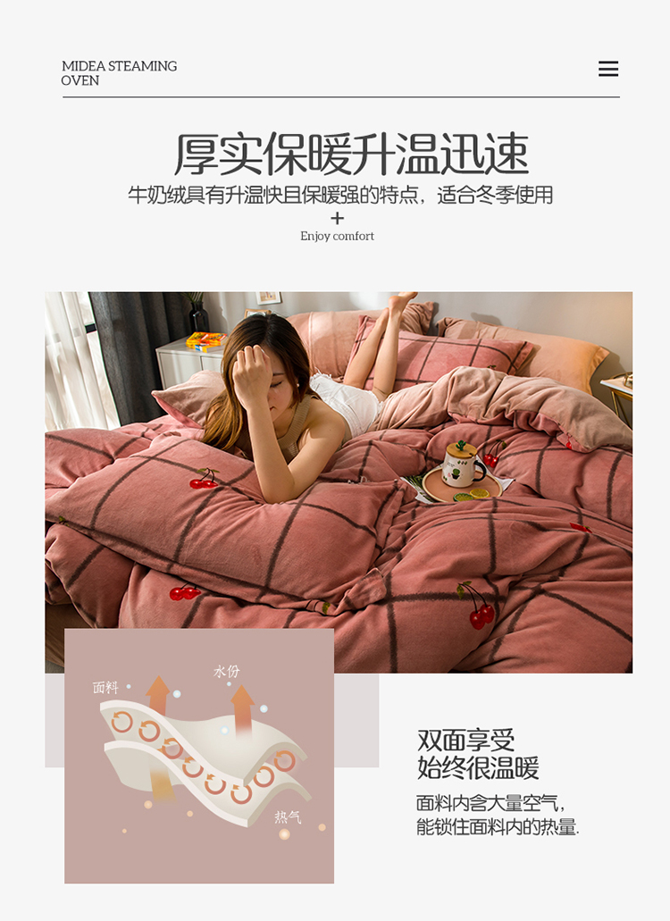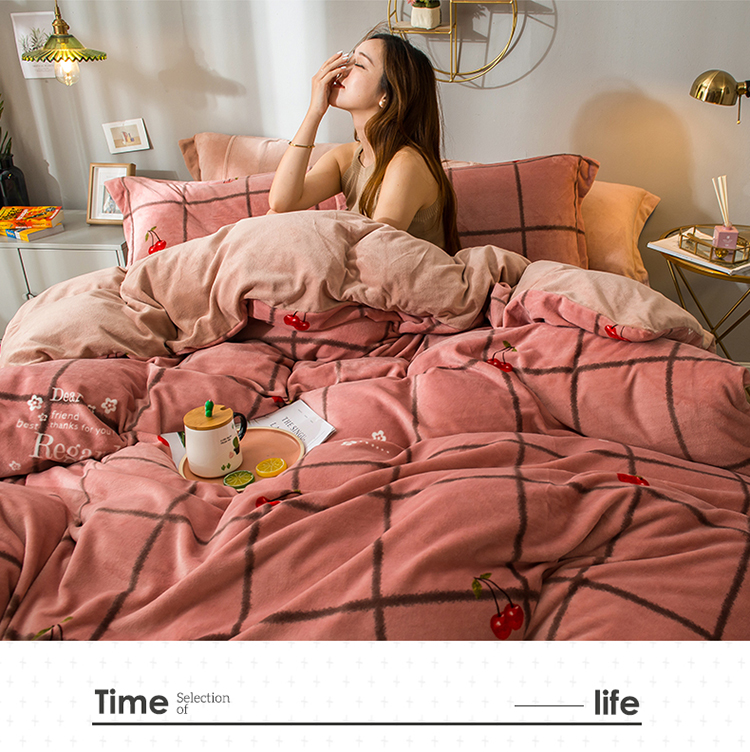 商品名称:新太阳 2022新款牛奶绒四件套 樱桃